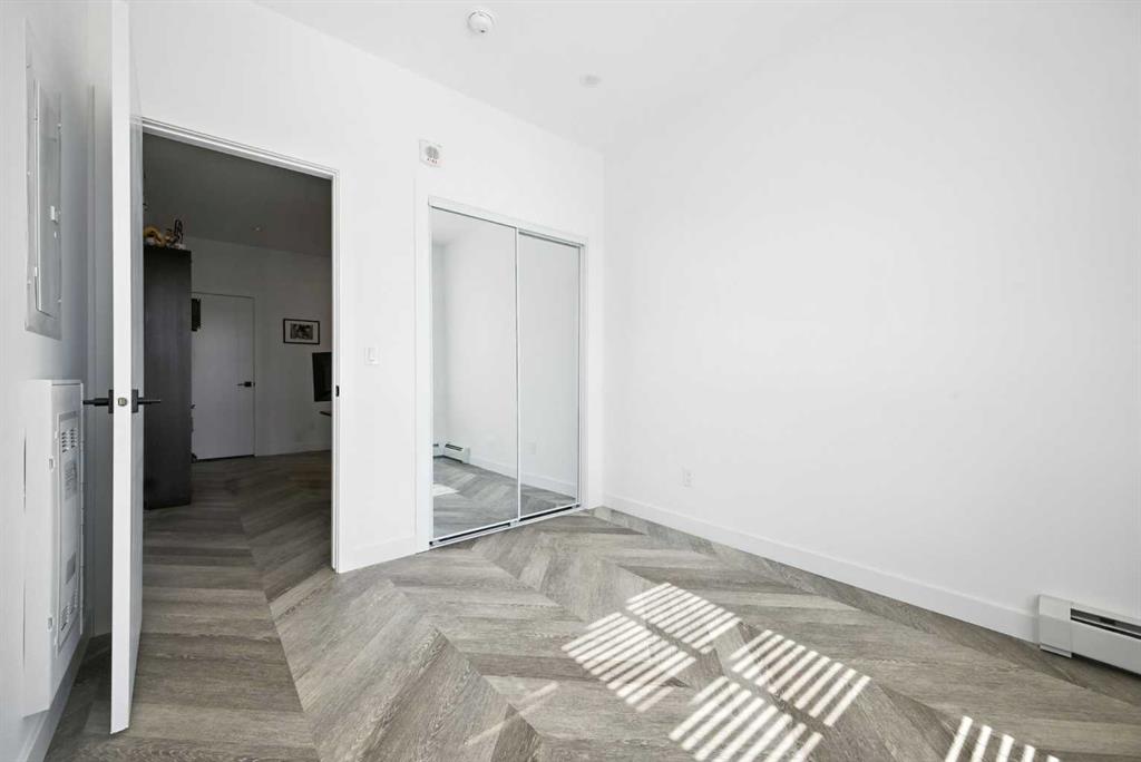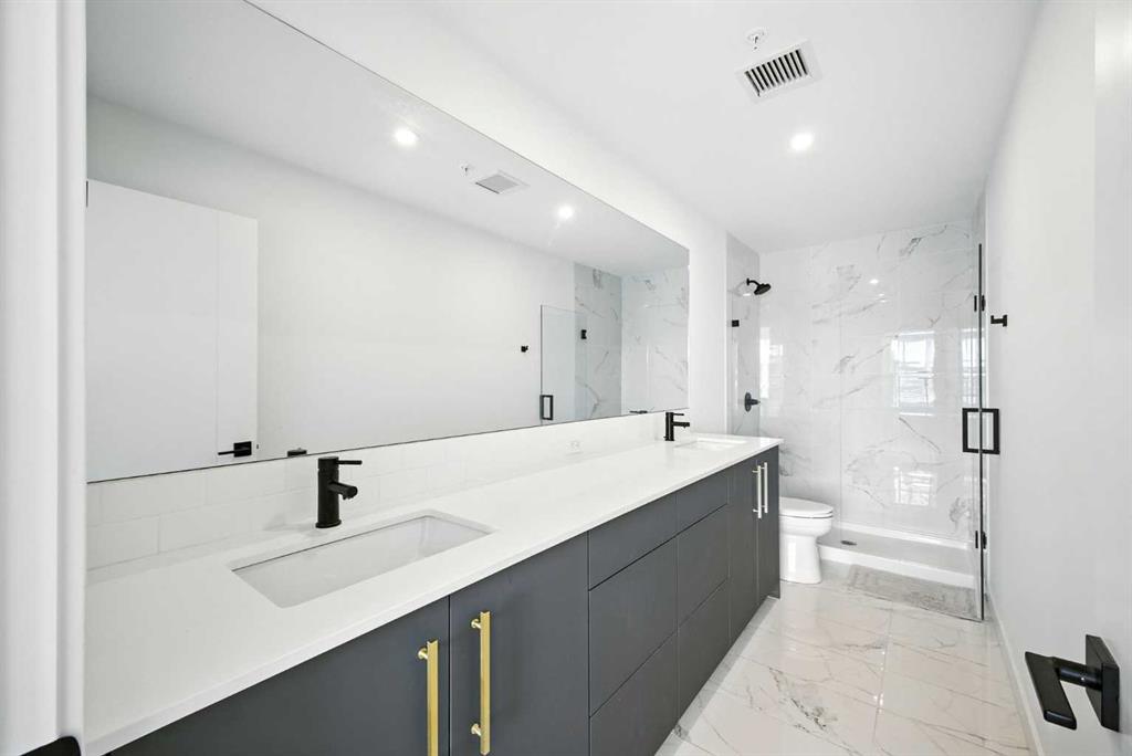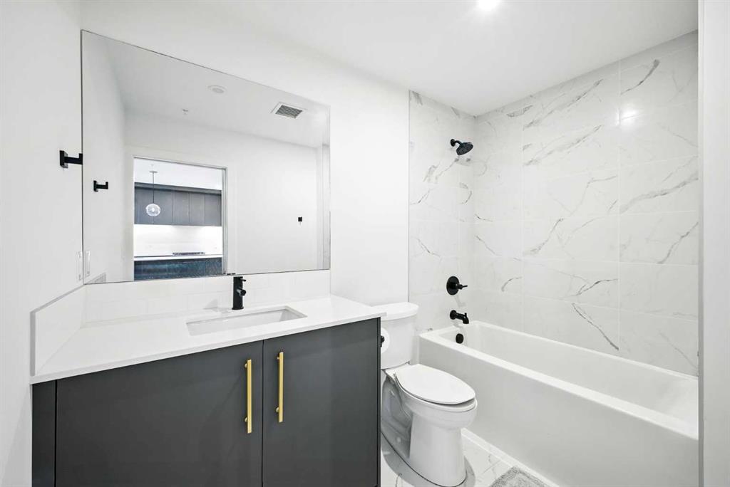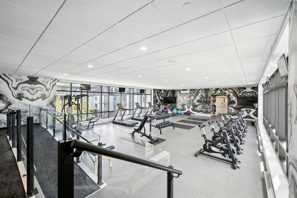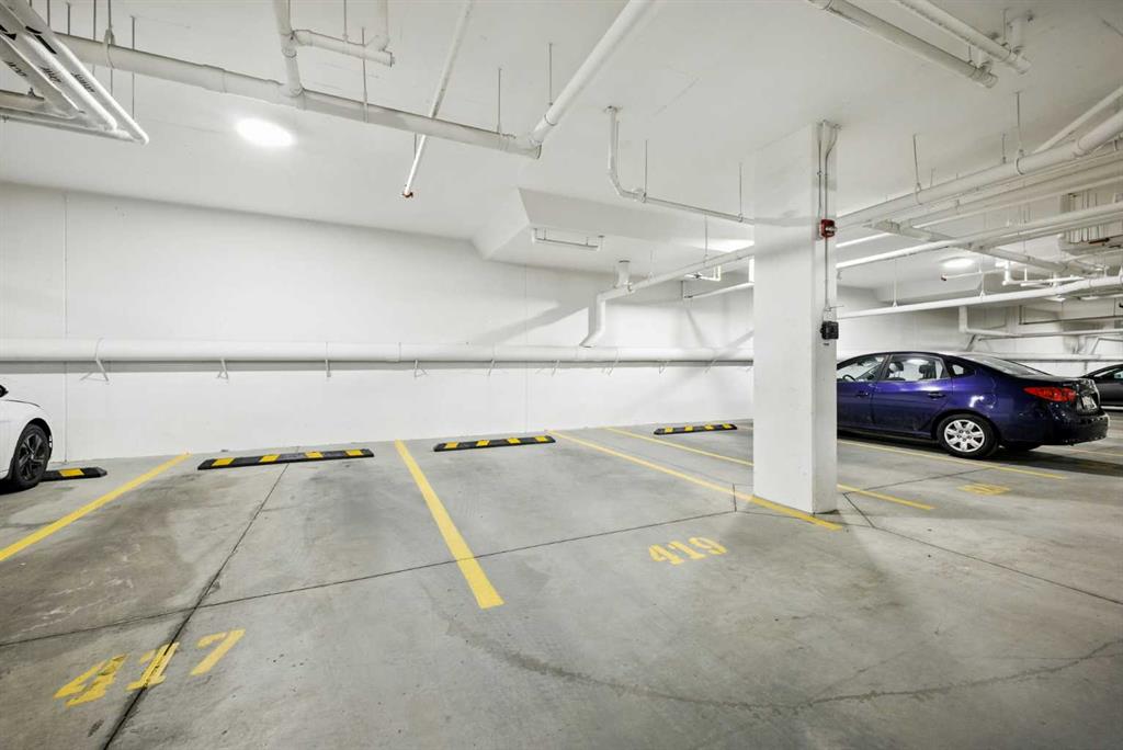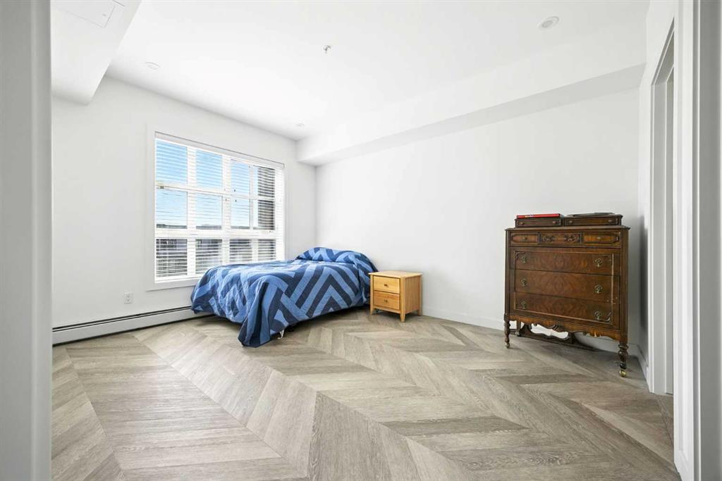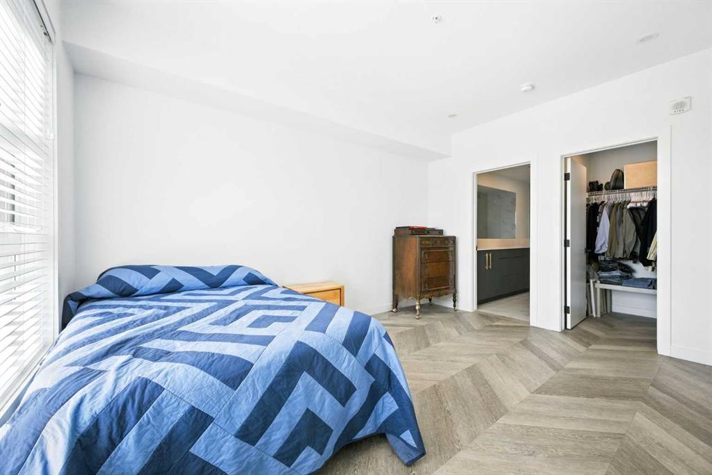 Bright top floor living with a quiet courtyard view and a southeast facing balcony. This 900 square foot 2 bedroom 2 bathroom home in Esquire offers high ceilings, a smart layout, and a clean modern finish package. The kitchen is built for real cooking with ceiling height cabinetry, quartz countertops, tile backsplash, a gas range, and a large island with seating. Herringbone vinyl plank flooring runs through the main living space, which is bright, open, and large enough for a dining setup plus a desk or study nook. Step outside to the southeast facing balcony and enjoy morning sun and evening unwind time overlooking the landscaped courtyard. The primary bedroom features a walk in closet and a 4 piece ensuite with dual sinks and a glass enclosed shower. A second bedroom and full bathroom add flexibility for guests, roommates, or a dedicated office. In suite laundry adds everyday convenience, and a titled underground parking stall keeps your vehicle secure and warm year round. Esquire residents enjoy premium amenities including a fitness centre, pet wash station, and bike storage with maintenance space. Steps from restaurants, cafes, grocery options, parks, pathways, and the off leash area, with quick access to the University of Calgary, Foothills Medical Centre, Alberta Children’s Hospital, and Market Mall. Book your showing today.