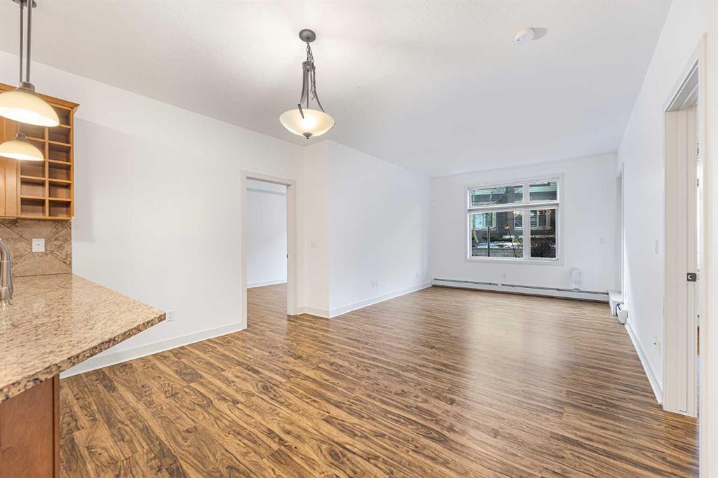 It is not often that we get units of this size available. Welcome to a refined main-floor corner unit in the heart of Aspenwoods. Featuring two-bedrooms, two-bathrooms this condo has an open-concept layout filled with natural light and finished with luxury vinyl plank flooring. The kitchen showcases granite countertops, stainless steel appliances, a built-in wine rack, and a convenient breakfast bar. The primary bedroom offers a walk through closet and private four-piece ensuite with soaker tub, while the second bedroom enjoys direct access to a full bathroom, ideal for guests or a home office. Additional features include in-suite laundry, two portable air conditioning units, titled underground parking, and two storage lockers and the unique option to purchase an additional titled parking stall. Residents enjoy excellent building amenities including two fitness centres, a guest suite, and ample visitor parking. Ideally located steps from scenic walking paths and within walking distance to Aspen Landing, with easy access to top-rated schools, recreation facilities, transit, and major commuter routes.