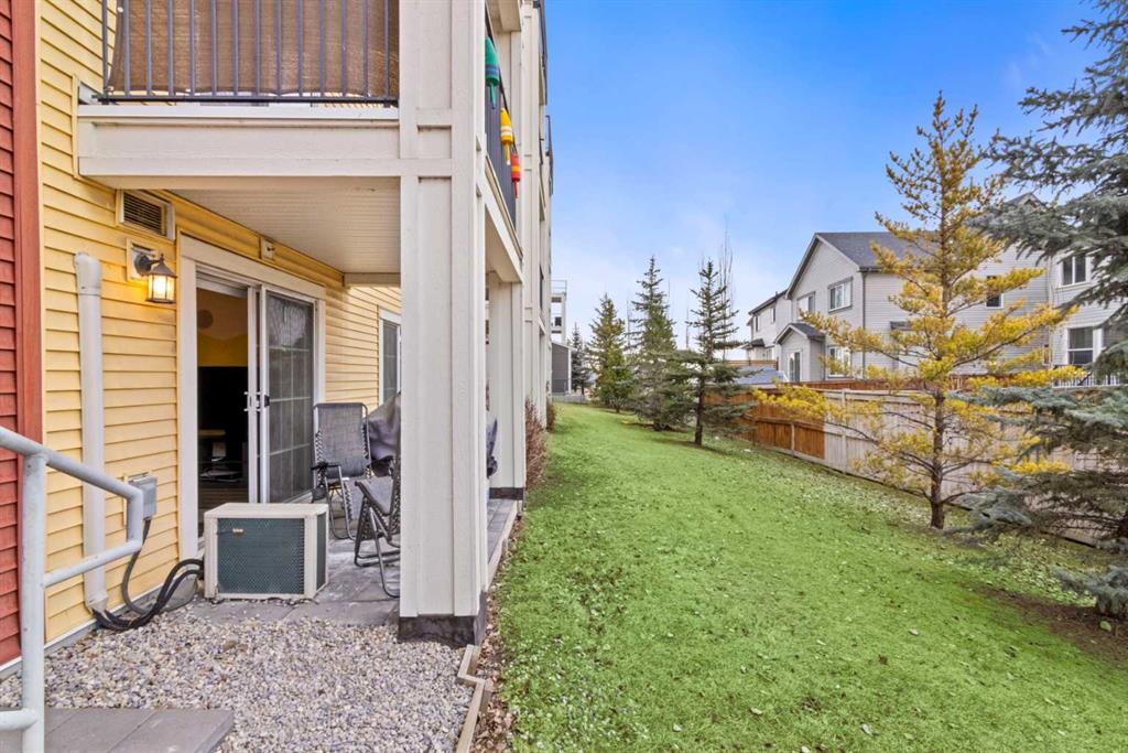 Set in Copperfield Park, this bright TWO bedroom, ONE bath home offers a rare sense of space and privacy thanks to its thoughtful layout and direct access to green space. The kitchen anchors the home with granite countertops, stainless steel appliances, ample pantry storage, and a generous island that works just as well for morning coffee as it does for casual dinners. From here, the living area flows naturally toward the back of the unit, creating a comfortable, open feeling space that easily accommodates both lounging and dining without feeling crowded. What truly sets this home apart is the private patio that opens directly onto green space. Step outside and enjoy the feeling of having your own yard but without the maintenance. With a gas BBQ hookup ready for summer evenings, this outdoor space becomes a natural extension of your living area, making the home feel larger, quieter, and more private than most condos. The primary bedroom is bright and calming, while the second bedroom features a built-in Murphy bed, offering flexibility as a guest room, home office, or both. A full bathroom, in-suite laundry, and excellent storage add everyday practicality. Located close to the building entrance and elevators, the titled underground parking stall and storage locker are easily accessed. With a park across the street, plenty of visitor and street parking, and quick connections to Stoney Trail and Deerfoot, this is a well-positioned home close to shopping, dining, and amenities in 130th Avenue, McKenzie Towne, and Mahogany.