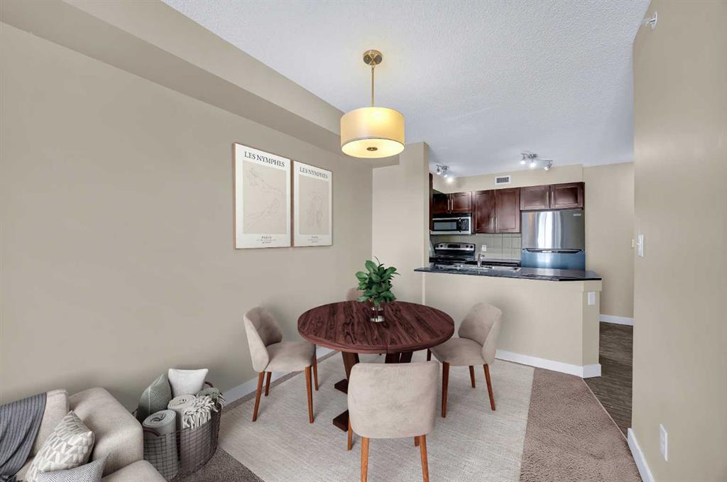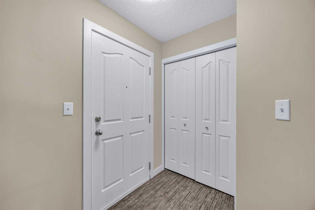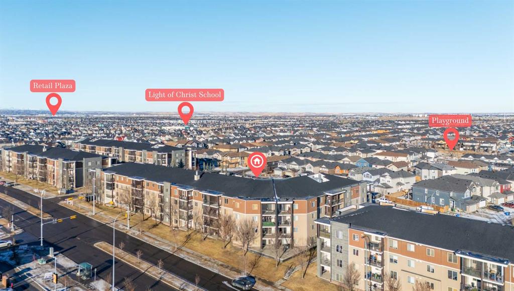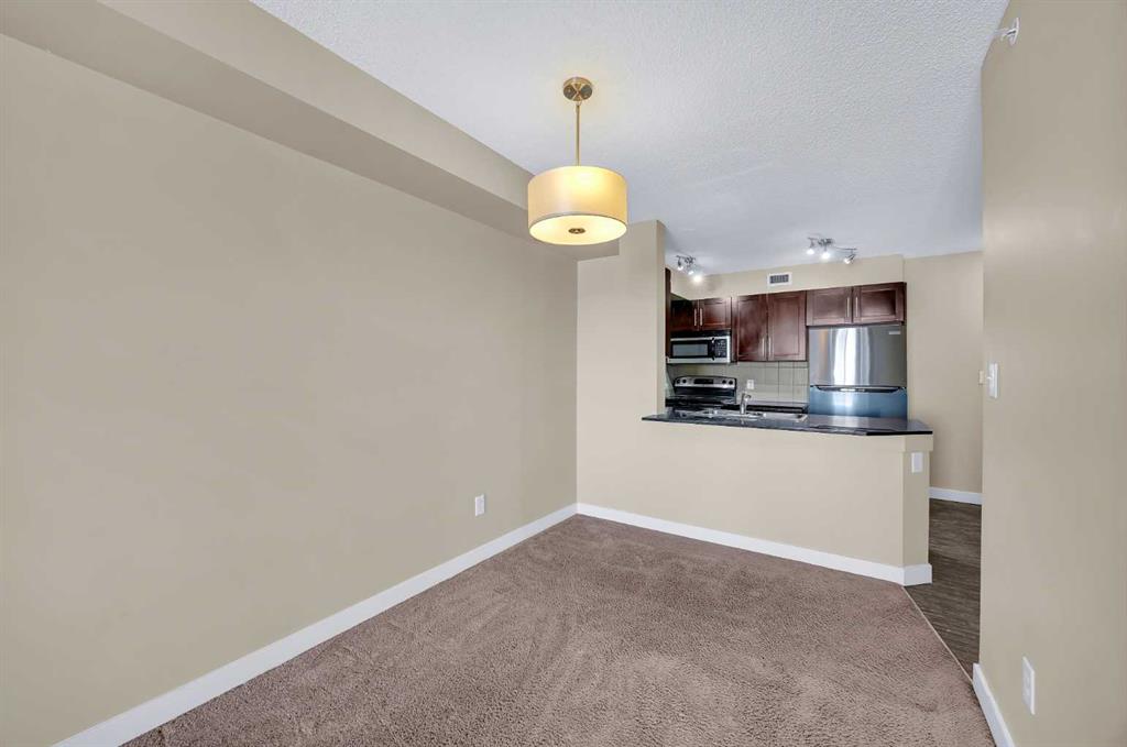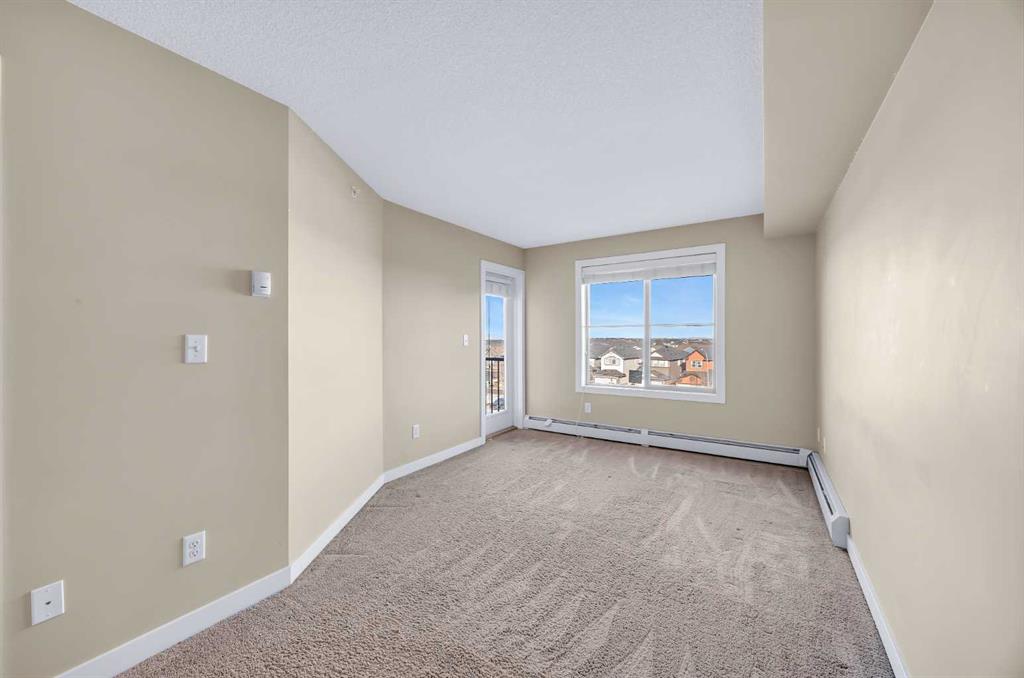 This bright top 4th-floor condo offers 507 sq. ft. of functional living space, conveniently located close to the elevator. The unit features a carpeted bedroom (8’11” × 11’4”) that fits a double size bed with side tables, a spacious living room, and a four-piece bathroom with a granite countertop sink. The kitchen boasts a granite breakfast countertop, double sink, stove, microwave, dishwasher, and a brand new fridge,. Additional highlights include a brand new in-suite washer and dryer and one titled underground parking stall (#463). Residents enjoy excellent convenience with a bus stop right outside, Tim Horton's, a gas station, and a strip mall including groceries just across the street. Genesis Centre, YMCA, and Saddletowne LRT are all within walking distance. Easy access to the airport, Stoney Trail, CrossIron Mills Mall, and Balzac make this location ideal for commuting and shopping.