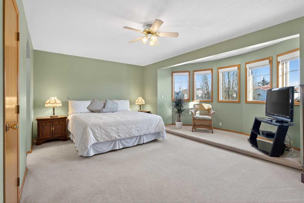 Backing West onto a winding urban environmental reserve is this mint-condition two storey in the highly sought-after estate community of Hamptons. Custom-crafted for the builder, this truly wonderful home enjoys a total of 5 bedrooms & 4 full bathrooms, glistening tile floors & oak woodwork, 2 fireplaces, oversized 2 car garage & a host of updates including new furnaces, metal roof, hot water tank & new PEX plumbing. Perfectly designed with the family in mind, you will love the inviting design & flow of this beautiful home, which features the gracious living room with bow window & soaring vaulted ceilings, elegant open concept formal dining room & spacious West-facing family room with brick-facing fireplace, built-ins & views of the backyard. The bright & sunny kitchen is loaded with cabinets & counterspace, & comes complete with phone desk, dining nook with access to the backyard deck & upgraded appliances including stainless steel Miele dishwasher & brand new LG stove (2026) & LG fridge (2026). Upstairs there are 3 great-sized bedrooms & 2 full bathrooms, highlighted by the oversized owners’ retreat with big bow window, large walk-in closet & gorgeous ensuite – renovated in 2022 - with tile floors, oversized glass shower, free-standing soaker tub & quartz-topped double vanities. The other 2 bedrooms each have their own private balconies & share a Jack & Jill-style bathroom with 2 sinks. The lower level is finished with another bedroom & bathroom with steam shower, cold room with built-in shelves & fantastic rec room with built-in shelving, lounge with gas stove fireplace & home office with built-in desk & shelving. The main floor also has your laundry room with LG washer & dryer, another bedroom (or home office) & bathroom with shower. Additional features & extras include a 2nd floor loft overlooking the living room, oversized garage with built-in storage, fenced backyard with gate to the reserve & deck with under-deck storage & new covering/glass/railings (2020), underground sprinklers & in addition to the new PEX plumbing (2025), new furnaces (2024), water tank (2019) & metal roof (2011 with transferrable lifetime warranty), there is newer cladding on the windows (2012), new garage door (2016), 3 new toilets (2022), 2nd floor window blinds (2022), landscaping (backyard & side in 2021) & vinyl decking on the 2 upper balconies (2020). A truly incredible home you will be proud to call your very own, here on this quiet crescent within walking distance to the Hamptons Park tennis courts & bus stops, just minutes to the Hamptons School & local shopping plus quick easy access to highly-rated schools & major retail centers, Crowfoot Centre & LRT, University of Calgary, hospitals & downtown.