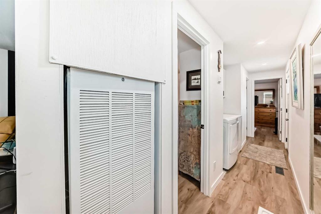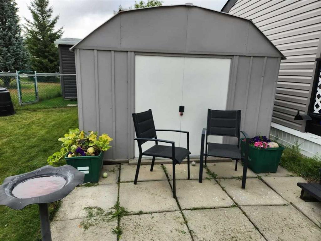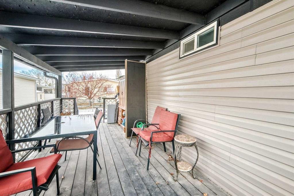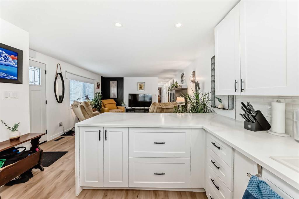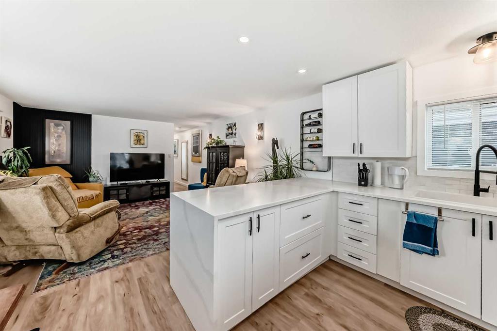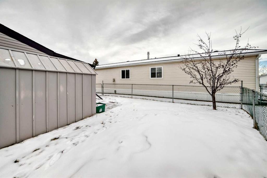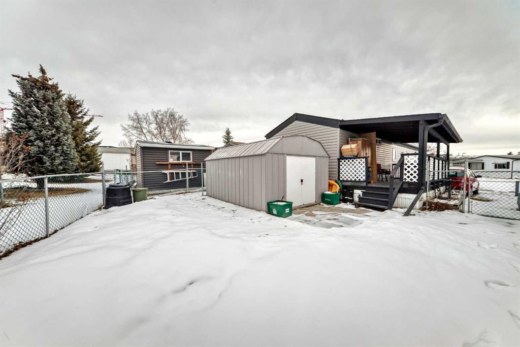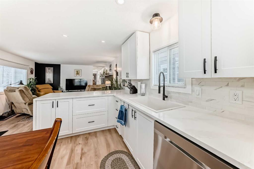 Welcome to this cute, professionally renovated mobile home in Watergrove mobile home park (45+ community). This home was taken down to the studs just two years ago and redone with drywall, knockdown ceiling, pot lights and vinyl plank flooring. A large primary bedroom with a huge closet, a good size second bedroom with a desk nook, and a 4 pce renovated bathroom are at the far end of the home. The kitchen has new shaker style cabinets, quartz countertop with waterfall edge, kitchen nook with decorative wall paneling, kitchen island, stainless appliances and a large window that brings in lots of light. The spacious living room has decorative wall panels that add modern style to the home. The bathroom was also updated with new bathtub, vanity and fixtures. Double pane vinyl windows were installed in 2018, new roof 2019, new siding 2023, new exterior doors 2023 and new hot water tank with leak monitor 2025. The backyard is fenced and has a powered shed for extra storage. This home is in a quiet cul de sac location just a short walk to the clubhouse. The amenity rich community includes an outdoor pool for summer annd the clubhouse features small gym, games room, lending library, dry sauna and indoor hot tub. Conveniently located to shopping at Crowfoot Crossing and the Crowfoot LRT station. Watergrove is a well managed 45+ community. Lot fee is $845/month and includes water, sewer, waste and recycling. Pet restrictions are 2 pets per home; dogs must be less than 15 inches at the shoulder when fully grown.