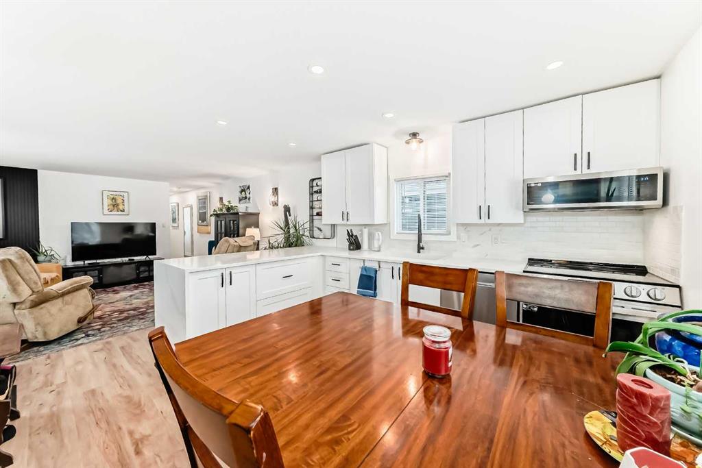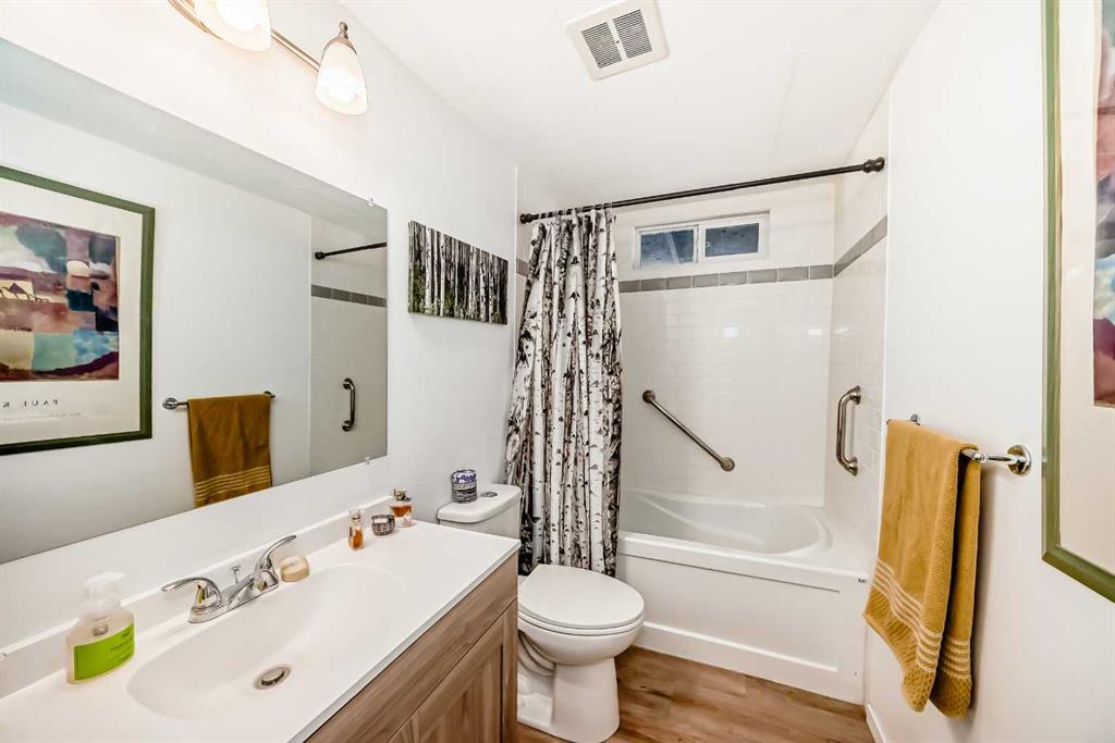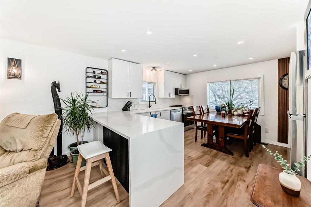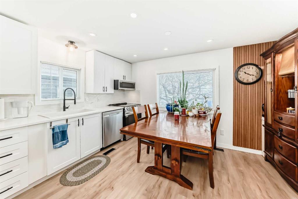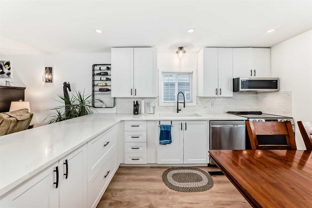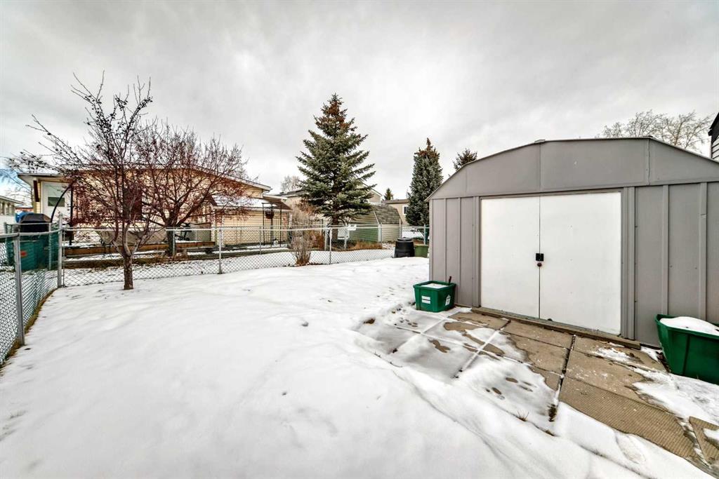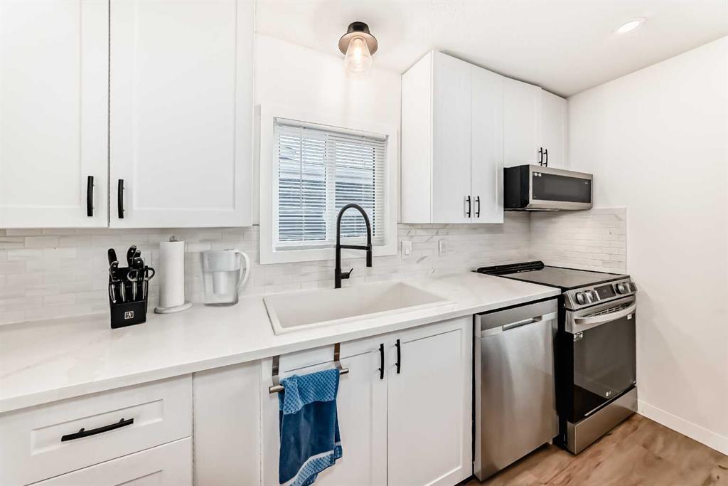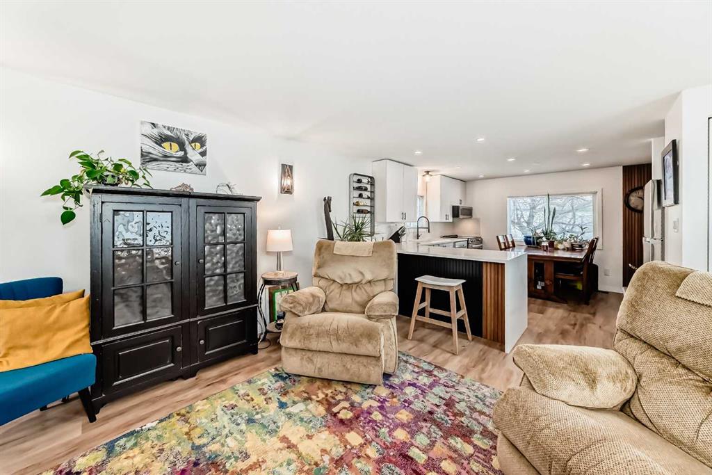 Welcome to this cute, professionally renovated mobile home in Watergrove mobile home park (45+ community). This home was taken down to the studs just two years ago and redone with drywall, knockdown ceiling, pot lights and vinyl plank flooring. A large primary bedroom with a huge closet, a good size second bedroom with a desk nook, and a 4 pce renovated bathroom are at the far end of the home. The kitchen has new shaker style cabinets, quartz countertop with waterfall edge, kitchen nook with decorative wall paneling, kitchen island, stainless appliances and a large window that brings in lots of light. The spacious living room has decorative wall panels that add modern style to the home. The bathroom was also updated with new bathtub, vanity and fixtures. Double pane vinyl windows were installed in 2018, new roof 2019, new siding 2023, new exterior doors 2023 and new hot water tank with leak monitor 2025. The backyard is fenced and has a powered shed for extra storage. This home is in a quiet cul de sac location just a short walk to the clubhouse. The amenity rich community includes an outdoor pool for summer annd the clubhouse features small gym, games room, lending library, dry sauna and indoor hot tub. Conveniently located to shopping at Crowfoot Crossing and the Crowfoot LRT station. Watergrove is a well managed 45+ community. Lot fee is $845/month and includes water, sewer, waste and recycling. Pet restrictions are 2 pets per home; dogs must be less than 15 inches at the shoulder when fully grown.