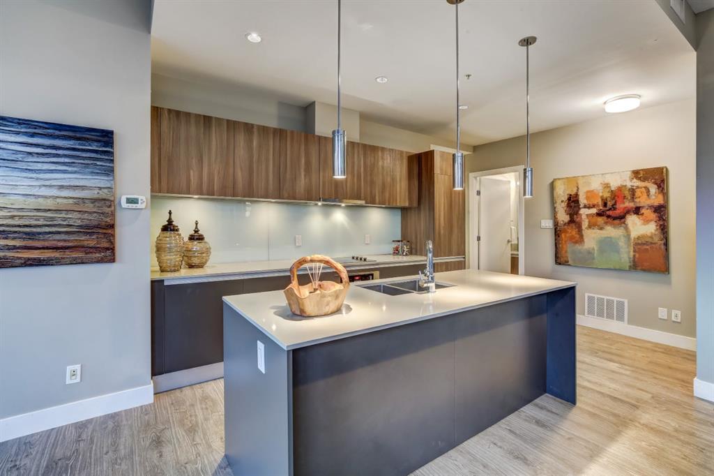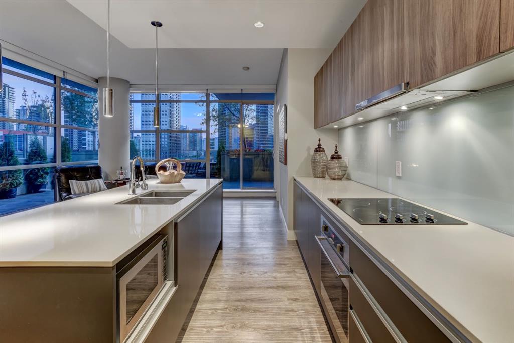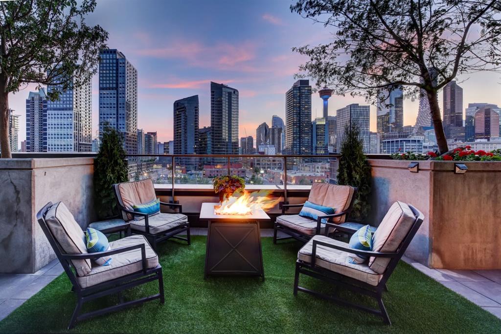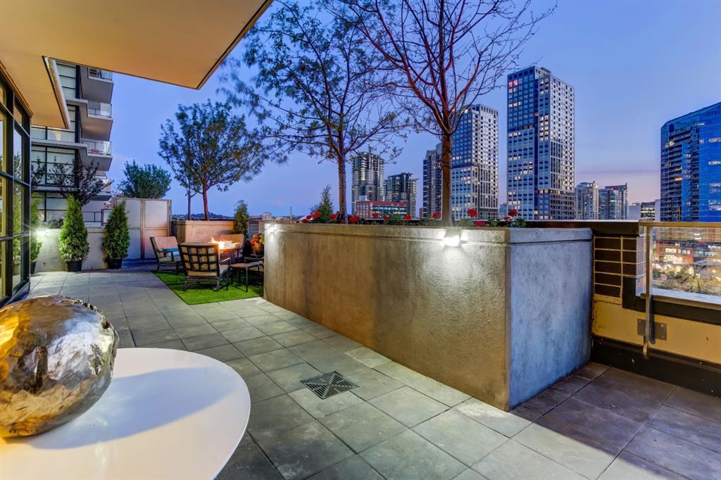 Love downtown living but craving outdoor space? This stunning SW corner terrace unit offers the best of both worlds - a rare, wrap-around 685 sqft terrace with breathtaking views of the city skyline. Located on the 7th floor, this bright and spacious corner layout features 10’ ceilings and expansive floor-to-ceiling windows that flood this unit with natural light and truly bring the outdoors in. The sleek modern kitchen is thoughtfully designed with built-in appliances, quartz countertops, and a convenient microwave shelf to keep your counters clear and functional. The primary bedroom includes upgraded custom closet built-ins to maximize storage, along with a 4-piece ensuite for added comfort. A true bonus: titled indoor tandem parking, rarely found in the building, ideally situated on the 4th level right next to the elevator doors (and only 3 floors down the stairs), with natural light streaming into the parkade through shaded windows. Perfect for the urban professional, you’re just steps from the Saddledome, downtown, C-Train, river pathways, shops, restaurants, and all amenities. Residents of The Guardian enjoy premium amenities including concierge service, a fully equipped fitness centre (directly below unit), social lounge, workshop, visitor parking, and a beautifully landscaped garden terrace with BBQs. With stairs conveniently nearby, you’ll never have to wait long for an elevator. Don’t miss this rare opportunity to enjoy downtown living with exceptional outdoor space!