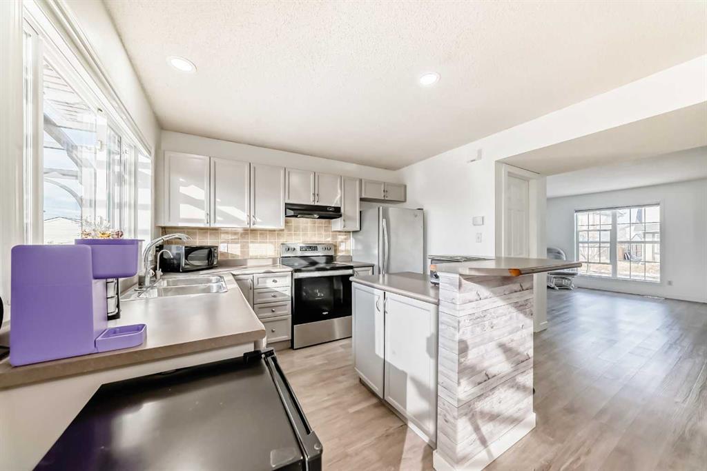Welcome to this beautifully upgraded semi-detached 2 storey home located on a prime corner lot in the heart of sought after McKenzie Towne. Offering exceptional functionality and value, this layout features two spacious primary bedrooms, each with its own full ensuite, making it ideal for families or guests. The bright main level showcases fresh paint, upgraded flooring, and new pot lights throughout, creating a modern and welcoming atmosphere. The kitchen flows seamlessly into the dining and living areas, perfect for everyday living and entertaining alike. Downstairs, enjoy a fully finished basement offering a rec room / open area and laundry. Outside, the property shines with a brand new solar panel roof backed by a 15-year warranty, new shingles on the home, double garage, RV parking, and a beautifully landscaped yard complete with pergola, patio furniture, and more, perfect for summer entertaining. Additional upgrades include a 6-stage reverse osmosis water filtration system, camera security system, and a robot vacuum, all included for added convenience. Situated close to schools, parks, shopping, transit, and all amenities, this move in ready home combines comfort, sustainability, and smart upgrades in one exceptional package. A rare opportunity in McKenzie Towne, don’t miss it!