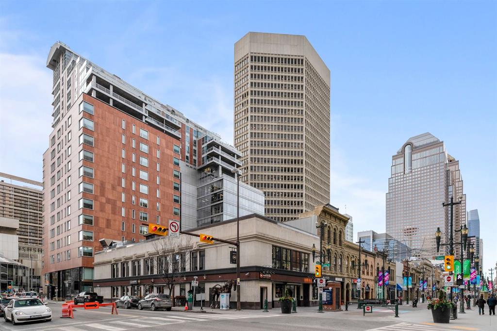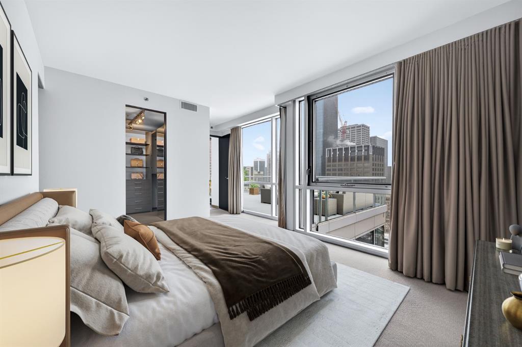 One of the most exclusive condominium residences in downtown Calgary, this exceptional sub-penthouse at Le Germain Residences offers 2,393 sq.ft. of refined living space with breathtaking panoramic views of the city skyline. Designed by internationally renowned architectural firm Lemay Michaud, the residences offer a boutique, club-like atmosphere with full access to the services and amenities of the acclaimed Le Germain Hotel. This beautifully designed suite features 9-ft ceilings, floor-to-ceiling windows, and open-concept living with north, south, and west exposures. High-end finishes include custom wood cabinetry by André Julien, quartz countertops, stone tile, Kohler fixtures, electronic blinds, and in-floor radiant heating, along with new paint and kitchen backsplash. The chef’s kitchen is equipped with Miele appliances and a wine fridge. A spectacular 650 sq.ft. terrace offers stunning city views, while the primary suite features a private balcony a walk-in dressing room, and spa-inspired ensuite. A second bedroom with private ensuite and balcony complete the home. Residents enjoy white-glove concierge service and full access to Le Germain Hotel amenities, including spa, fitness centre, valet parking, restaurants, and room service. The unit includes two premium underground parking stalls and secure storage. Ideally located between Stephen Avenue and the Calgary Tower, this is downtown living at its finest. Images and 3D tour have been virtually staged to help illustrate the property’s potential layout and furnishings. Furnishings, Tv's and decor shown are not included in the sale.