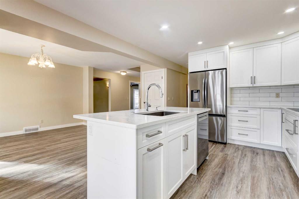 INCREDIBLE TRANSFORMATION! Welcome to this beautifully fully renovated family home including the basement(2023-2025) with over 3000 sqfeet living area located in the mature and highly desirable community of Hawkwood. This rare offering features 6 bedrooms + Den, including 5 spacious bedrooms on the upper level, making it ideal for growing families. From the moment you enter, you’ll appreciate the modern, sleek interior and thoughtful design. The main floor offers a large living room with bay window, custom built-ins, and a coffered ceiling perfect for a home office or study. The stunning white kitchen showcases a center island, quartz countertops, flat-finished ceilings, and stainless steel appliances, flowing seamlessly into the bright dining area. The cozy family room is anchored by a wood-burning fireplace with gas log lighter and enhanced by recessed mood lighting. A powder room and main-floor laundry complete this level. Upstairs, you’ll find four generously sized bedrooms, including the primary bedroom with a 4-piece ensuite and walk-in closet, plus an additional 4-piece bathroom. The fully finished basement (2024) offers exceptional flexibility, featuring a reconfigured layout, new bedroom, new kitchen, new bathroom, new flooring, and fresh paint, with its own separate entrance. The basement is currently an illegal suite with excellent potential for conversion. According to the contractor, most of the work required for a future Secondary Suite has been completed prior to City registration (Subject to City/Municipality Permitting and Approvals). This space is ideal for extended family living or future rental income. Additional upgrades include a new air conditioning system (2025), newer windows (approx. 12 years), two high-efficiency furnaces with drip humidifiers (approx. 5 years), a hot water tank(2025), and a brand-new covered deck. The front-drive, double heated garage is heated and equipped with 220V power and hot/cold water. Situated on a quiet crescent, just minutes from schools, shopping, and amenities, this newly modernized home offers outstanding value in an ideal family-friendly location. Don’t miss this exceptional opportunity—book your private showing today!
