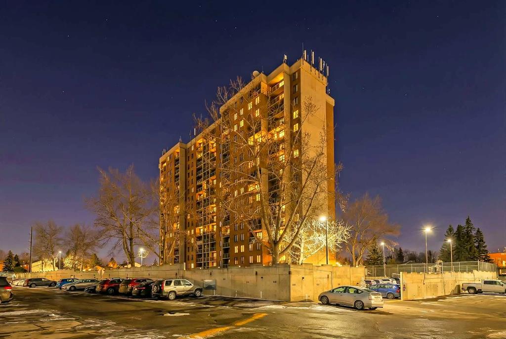 Year-round sunny NW-facing balcony with gorgeous city AND mountain views! Over $25K in new interior updates, and it is perfectly move-in ready from all the updates! This bright and airy 2-bed, 1-bath corner unit offers exceptional value, comfort, and convenience in one of NW Calgary’s most established communities. Ideal for students, young professionals, first-time buyers, or investors looking for a high-income, low-maintenance property near the University of Calgary, Foothills Hospital, Children’s Hospital, Market Mall and the new Calgary Cancer Centre can be extremely recession-resistant in your rental portfolio. Inside, a welcoming foyer with an oversized storage closet leads into a functional, well-planned layout designed for easy living. The kitchen features all of the essential appliances, including an updated stove, ample cabinetry with updated hardware, and a dual-basin stainless steel sink. The adjacent living room is bright and spacious, framed by large windows that fill the space with ample natural light. Step directly onto the private balcony to enjoy fresh air and beautiful mountain views, great for unwinding after a long day. Both bedrooms feature newly carpeted floors, creating comfortable and quiet retreats. The 4-piece bathroom features a vanity with storage, a tub/shower combo with tile surround, and tiled flooring. Additional updates throughout the home include laminate flooring in the living area, freshly patched & painted walls and ceilings, painted baseboards, and more! Plus, the oversized storage room off the foyer could accommodate future in-suite laundry if desired. Adding even more value, this unit includes an assigned covered parking stall in the parkade, a rare and highly desirable feature for this building. Residents of The Fortress enjoy fantastic amenities, including an indoor saltwater swimming pool, fitness center, and tennis courts. Secure bike storage is also available. Located steps from the Dalhousie C-Train station, shopping, restaurants, and parks. And with quick access to major routes, the University of Calgary and SAIT, Market Mall, Foothills Medical Centre, and downtown, you’ll be where you need to be in a breeze. This condo offers an unbeatable lifestyle and excellent long-term value. All that’s left to do is move in!