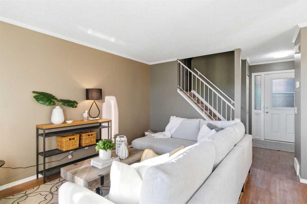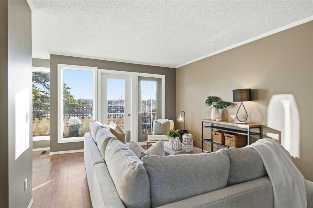 PRICE IMPROVEMENT! UNDER $290K, stop renting and start owning. This is an affordable townhome into homeownership. Welcome to Nose Creek Gardens, a pet-friendly complex, where this desirable interior end-unit 2-bedroom home offers strong attraction for buyers. Advantages of Unit 6’s location include fewer shared walls for reduced noise, extra windows for elevated natural light, and no parking-lot exposure. Move-in ready, the main level showcases a bright, open-concept floor plan with laminate hardwood flooring and fresh, neutral paint tones throughout. The stylish kitchen with timeless shaker-style cabinets, modern black appliances, and breakfast bar flows seamlessly into the dining and living areas. From the living room, patio doors open to a private, fenced-in backyard with deck and grassy space, extending daily living and great for entertaining. Upstairs, you’ll find a dedicated storage room and linen closet, plus 2 generously sized bedrooms and a 4-piece bath with a reglazed tub (Dec 2025). There is no shortage of storage with the front hallway closet, main-level crawl space, and dedicated laundry room with new washer/dryer (Mar 2026). Feel peace of mind with the home’s updated triple-pane windows (2021), high-efficiency furnace (2017), and recent new hot water tank (Dec 2025). Assigned parking stall with plug-in and ample street parking, plus the building benefits from Hardie Board siding and new fencing planned for 2028, which offers a compelling opportunity to buy in at today’s price ahead of these planned improvements for enhanced long-term value once completed. In the community of Greenview, enjoy quick access to Deerfoot Trail, McKnight Blvd, downtown, airport, with public transit steps from your back door. The Nose Creek Pathway systems make it easy to enjoy nearby parks and trails, in addition to the complex’s mature trees and landscaped pathways. Book your showing today! At this price point, this home delivers comfort and lifestyle appeal, suited to first-time buyers, downsizers, or investors.