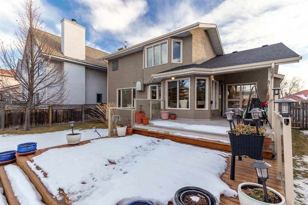 Welcome home to this stunning two-storey split, perfectly situated on a quiet cul-de-sac in the sought-after community of Edgemont. Boasting exceptional curb appeal and an oversized garage, this beautifully maintained home offers space, style, and comfort for the whole family. The main level features a bright, open-concept layout with vaulted ceilings in the spacious living room and formal dining area. A double-entry foyer provides year-round protection from the elements and opens to a grand circular staircase with an impressive vaulted entry. The updated gourmet kitchen is a chef’s dream, showcasing stainless steel appliances including a gas cooktop, wall oven, custom hood fan, dishwasher, and double-door refrigerator. Granite countertops, a decorative tile backsplash, and a large island provide both elegance and functionality. The kitchen flows seamlessly into the dining nook, offering easy access to the expansive deck and beautifully landscaped, massive backyard—perfect for entertaining or relaxing outdoors. The inviting family room features a cozy fireplace framed by custom built-ins, creating the ideal gathering space. Upstairs, you’ll find four generously sized bedrooms, including a bright and spacious primary retreat with a walk-in closet and four-piece ensuite. An additional four-piece bathroom completes the upper level. The professionally developed lower level offers incredible versatility, featuring an open office area, hobby room, large recreation space, and a separate workout area, along with a convenient two-piece bathroom. Numerous upgrades enhance the value and peace of mind of this home, including a newer roof, fresh exterior and interior paint, two hot water tanks, and updated PEX plumbing replacing Poly-B throughout. The oversized garage is equipped with new insulated overhead doors and epoxy flooring, while the exposed aggregate driveway adds both durability and style. The professionally landscaped yard is truly spectacular, showcasing mature trees, flower beds, and lush greenery—creating a private, park-like setting that shines in spring and fall and feels like a personal retreat all summer long. Schedule your private viewing today.