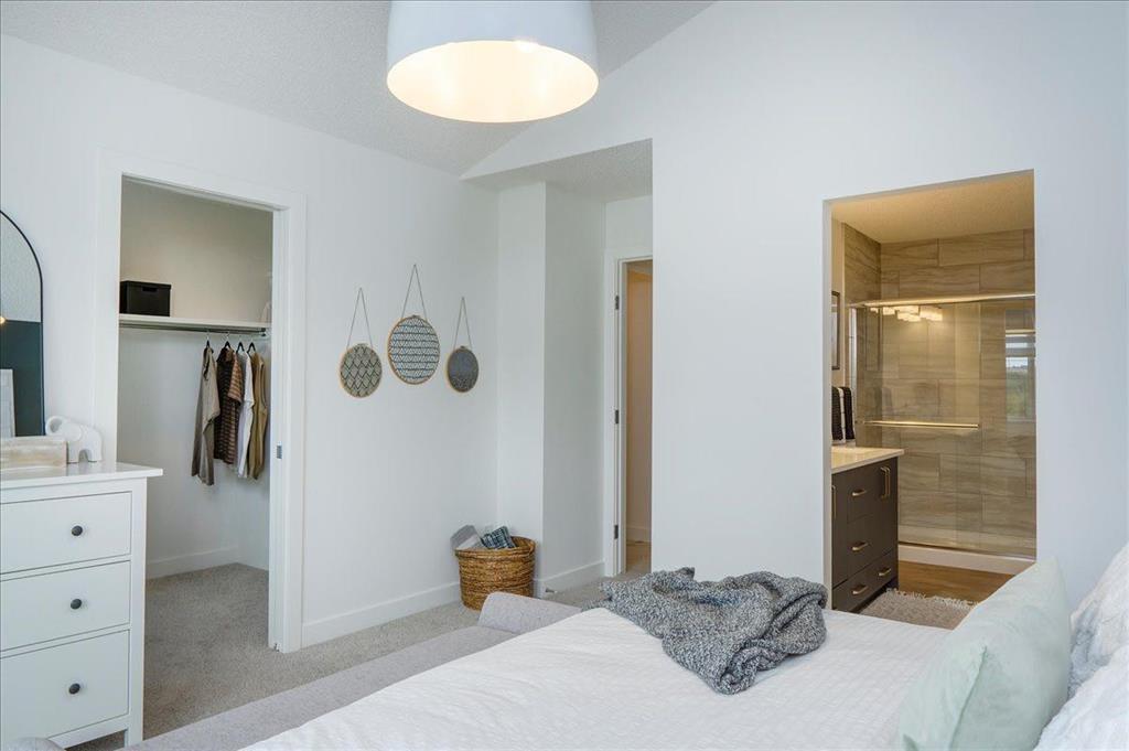 OPEN HOUSE SATURDAY FEB. 21st FROM 12:30 PM - 2:30 PM *Magnificent former showhome situated across the street from a large pond and a future estate area. Enjoy the view from your very own full width covered veranda. The home itself combines a bright, open layout with contemporary comfort. Once inside, the quality of the workmanship is extraordinary. From the retro partition wall in the foyer, to the cozy great room fireplace with its streamlined mantle, to the elegant metal railing on the staircase and the soaring high ceilings, you will feel right at home. From the front of the home to the back, it is one expansive open space. The kitchen is sensational, featuring a huge island with eating bar, drop down pendant lighting, a modern upgraded backsplash, sleek chimney hood fan, stainless steel appliances, and striking three tone cabinetry. It is truly a showstopper. As you head upstairs, the metal railing continues beyond the staircase and throughout the upper floor. The primary bedroom has it all, including a vaulted ceiling, a massive walk in closet with MDF shelving, and a grand five piece ensuite with double sinks and a five foot wide tiled shower. The spare bedrooms are located at the rear of the home, offering excellent separation for homeowners. The large laundry room includes a counter, cabinets above the washer and dryer, and additional shelving for linens. The basement is undeveloped and ready for future development, with rough in plumbing for a bathroom already in place. The double car garage provides secure parking and additional storage. Be the first to view this remarkable home.