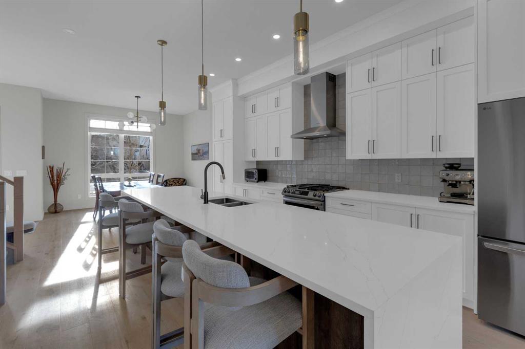 HOME SWEET HOME! Welcome to this BREATHTAKING 2023 CUSTOM-BUILT SEMI-DETACHED HOME in the heart of trendy Bowness highlighted by a LEGAL BASEMENT SUITE! This is an exceptional opportunity to own and invest in one of Calgary’s most sought-after, rapidly evolving communities with quick access to escape to Canmore, Banff and the mountains. This SPECTACULAR INFILL HOME offers the perfect balance of luxury, space, and smart income potential offering 5 bedrooms, 3.5 bathrooms and over 1,968 SQFT above grade living space. This thoughtfully designed home delivers two spacious levels of beautifully curated living space complimented by a fully self-contained 2 BEDROOM LEGAL BASEMENT SUITE with a separate entrance, ideal for a MORTGAGE HELPER. The main floor impresses with soaring 10’ ceilings, breathtaking hardwood flooring, timeless designer finishes, and an abundance of natural light pouring in through large south-facing windows. The spacious rear living room opens seamlessly onto an oversized deck through sliding patio doors, an entertainer’s dream. At the heart of the home, the show-stopping kitchen features custom cabinetry, a striking 13’ quartz waterfall island with a breakfast bar, pantry, premium stainless steel appliances and a stylish coffee bar that blends function with flair. Upstairs, retreat to a luxurious primary suite complete with a custom tray ceiling, a generous walk-in closet, and a spa-inspired 5 piece ensuite bathroom highlighted by a cozy soaker tub, double vanity sinks and a private shower with a bench. Two additional generous-sized bedrooms, a gorgeous 5 piece bathroom, and a convenient upstairs laundry room complete this floor. The LEGAL BASEMENT SUITE is equally impressive, boasting a large bedroom with walk-in closet, a spacious living area rarely found in suites, a contemporary, stylish white fully equipped kitchen with stainless steel appliances and an additional bedroom with full egress windows which can easily accommodate a home office. HOME UPGRADES include Custom blinds in the dining room ($3,000) and basement windows ($500), Fine filter water system under kitchen sink, moved wall in basement to enlarge area for washer/dryer, re-built master bedroom closet with an Ikea storage closet for much more clothing storage. Outside you will find your convenient, maintenance free landscaped front and back yard and a double detached garage that is insulated, drywalled, wired and has a wall of storage shelves, linen closet in upstairs hallway and re-built one bedroom closet for additional storage space. Located in the heart of Bowness, this home is just steps from major amenities including parks, pathways, schools, local shops, restaurants, breweries, cafés, the Bow River and it's pathway systems, quick access to downtown, Market Mall, Canada Olympic Park, and the mountains, all while being part of a vibrant, walkable, and close-knit community known for its outdoor lifestyle. CALL TODAY!