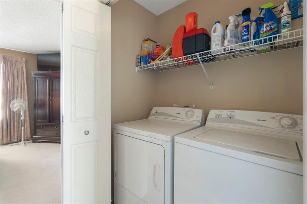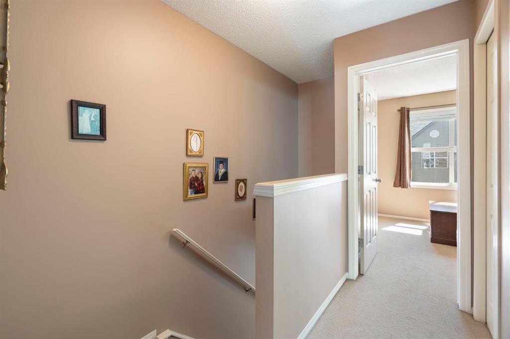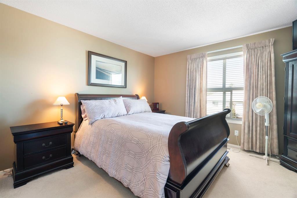 Located in the quiet, well-maintained Wildflower complex in the desirable community of Bridlewood, this 2-bedroom, 1.5-bathroom townhouse features soaring ceilings, an attached single-car garage, and low condo fees. Upon entering, you will find a designated foyer with direct garage access, a large closet, and entry to an undeveloped basement/utility room that provides excellent additional storage. A short flight of stairs leads to a bright living room boasting high ceilings, a large window for ample natural light, a gas fireplace, and access to a balcony. The open-concept kitchen features white cabinetry and matching appliances, situated next to a dining area with plenty of space for hosting. A convenient half-bathroom completes the main floor. The upper level includes a laundry area and a primary retreat large enough for a king-sized bed, featuring a walk-in closet and room for additional furniture. This floor also offers a four-piece bathroom with a large vanity and a spacious secondary bedroom. This unit is steps away from parks and schools, and only a short drive to the amenities of Shawnessy, including the LRT, grocery stores, banks, and restaurants.
