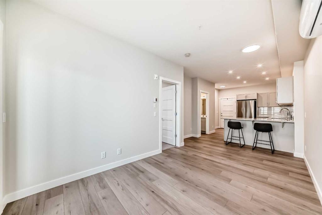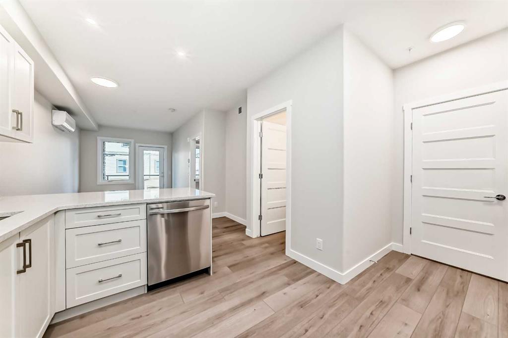 Welcome to The Whitney—where modern design meets everyday comfort. This 1 bed/1bath "Tribeca" unit offers 576 sq.ft of architectural measurement(531 sq.ft RMS measurement) of living space, ideal for first-time buyers, professionals, downsizers, or investors seeking strong value in a premium southwest Calgary location. Step inside to a stylish kitchen featuring granite countertops, upgraded soft-close cabinetry, luxury vinyl plank flooring, and stainless steel Samsung appliances, seamlessly flowing into the bright living and dining area—perfect for entertaining or relaxing at home. The spacious primary bedroom includes a walk-through closet that leads directly to a sleek 4-piece ensuite bathroom, offering both convenience and comfort. One of the standout features is the large private balcony, providing excellent outdoor living space for morning coffee, evening meals, or container gardening. Additional highlights include in-suite laundry, air conditioning, premium sound attenuation, and titled underground parking. Enjoy a walkable lifestyle just 5 minutes from Aspen Landing, home to over 50 shops and services including Safeway, Starbucks, Shoppers Drug Mart, restaurants, and banks. With easy access to 17th Avenue SW, transit, and the C-Train, downtown Calgary is only a 15-minute commute away. Move-in ready and protected by the Certified New Home Warranty Program, this home offers the perfect blend of modern living, convenience, and long-term value. Book your private showing today!