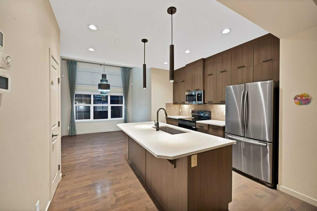 Welcome to this exceptional Jayman BUILT former show home, ideally located in the sought-after community of Redstone. Showcasing upscale design, modern finishes and premium upgrades throughout, this beautifully appointed home reflects quality craftsmanship and thoughtful attention to detail. This fully finished floor plan is perfectly suited for both entertaining and everyday family living. The open-concept main level features a thoughtfully designed kitchen overlooking the spacious Great Room, highlighted by a stunning bank of windows that floods the space with natural light. The adjacent dining area opens onto a generous 15’ x 8’ deck, ideal for outdoor enjoyment. The kitchen is complete with Polaire Elegant White quartz countertops, Samsung stainless steel appliances, a large centre island with an oversized flush eating bar and designer lighting. Upstairs, you’ll find three spacious bedrooms, including a well-appointed primary suite with a large walk-in closet and a stylish 4-piece ensuite. The fully developed lower level offers additional living space with a family room, wet bar, full bathroom, office and laundry area. A rear double detached garage with lane access completes this outstanding property. This wont last for long. Contact today to book private showing.