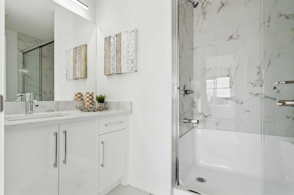 MOVE-IN READY WITH IMMEDIATE POSSESSION | LIMITED-TIME BUYER INCENTIVE | NO CONDO FEES FOR 2 YEARS IF FIRM BEFORE APRIL 30 | 5 BEDROOM END UNIT | MAIN-FLOOR PRIVATE GUEST SUITE | TOTAL 1,969 SQ FT | Welcome to Unit 205 at Saddlecrest Living, a 5-bedroom, 4-full bath end unit townhome located in a brand-new 43-unit community in Calgary’s Northeast. This home is spread across three levels with an attached garage, offering both space and flexibility for families. A standout feature is the main-floor private guest suite with a full bathroom and separate rear entry, ideal for extended family, guests, or future rental income potential. The main living area features an open-concept layout with 9-foot ceilings and triple-pane windows that bring in natural light while improving energy efficiency. The kitchen is finished with floor-to-ceiling cabinetry and premium quartz countertops, and stainless steel appliances, creating a clean and modern look. Upstairs, the primary bedroom includes a custom shower with a built-in seat, while all bathrooms feature full-height tile for a contemporary finish. Carpeted bedrooms add comfort, and luxury vinyl plank flooring on the main level ensures durability and easy maintenance. Built for Calgary’s climate, the exterior combines stucco and Hardie siding for hail protection and low maintenance. Saddlecrest Living is a connected, family-friendly community close to schools, playgrounds, Saddletowne LRT, shopping, medical clinics, and fitness centres, with quick access to Stoney Trail, Calgary International Airport, Costco, CrossIron Mills, and New Horizon Mall. Whether this is your first home, a step up for a growing family, or a smart investment, Unit 205 offers space, versatility, and long-term value in one of Calgary’s fastest-growing corridors. Visit the neighbouring showhome (A2265177) for a full tour of the layout and finishes. Images are for illustrative purposes only and are of a similar end unit within the same project.