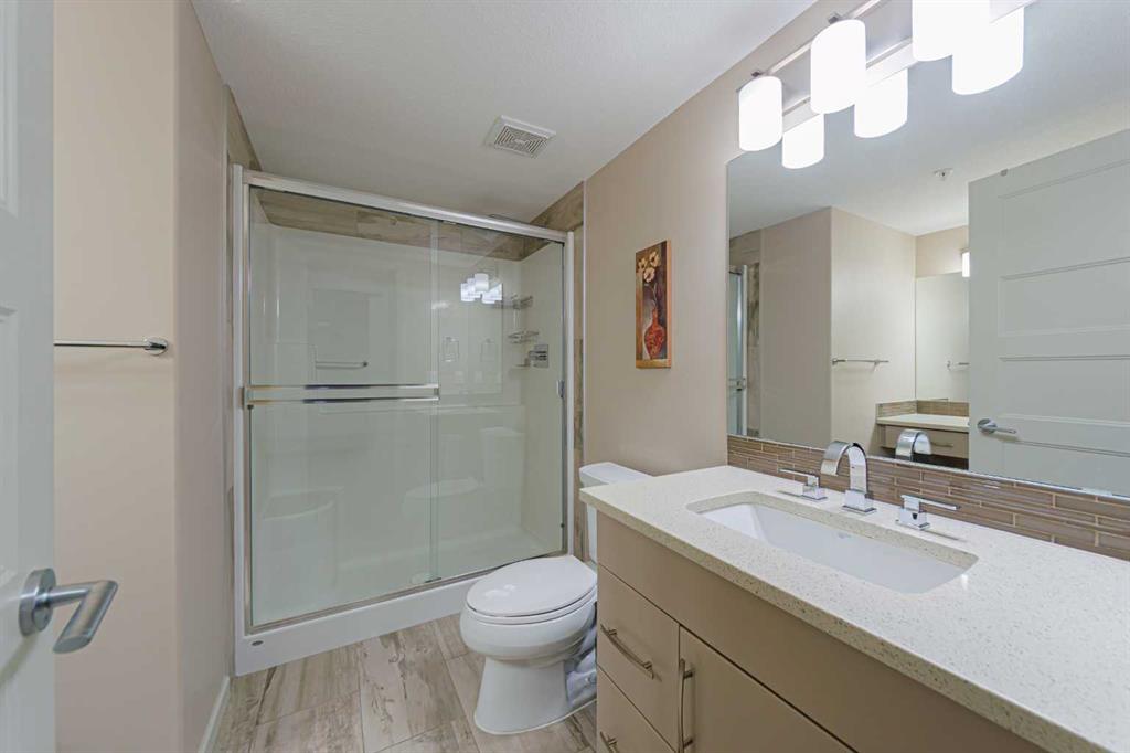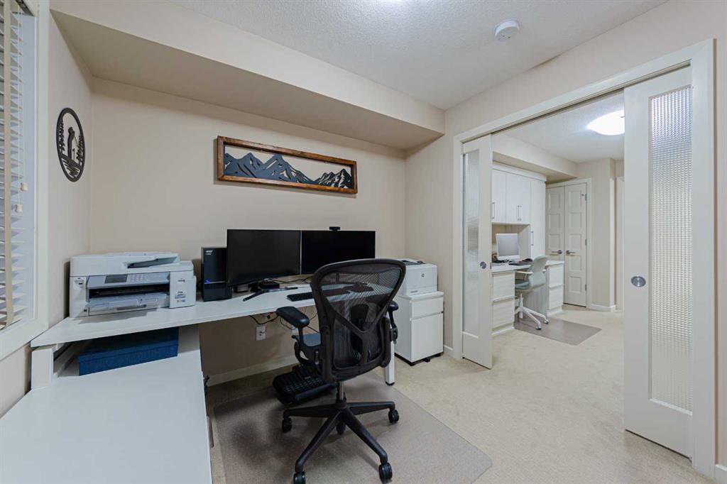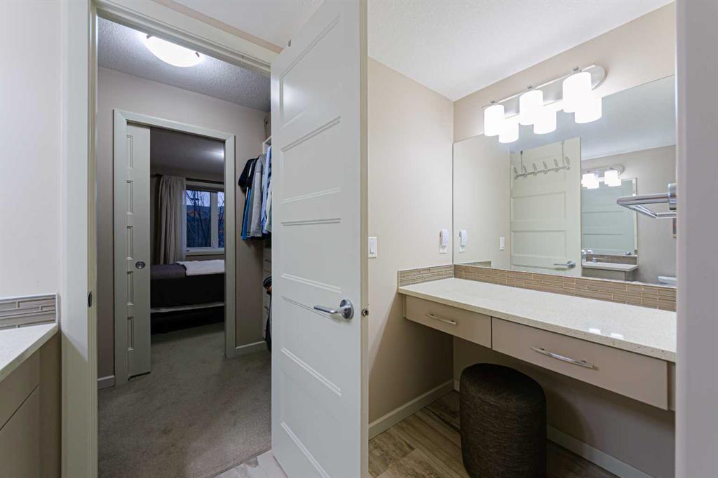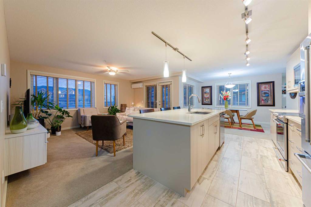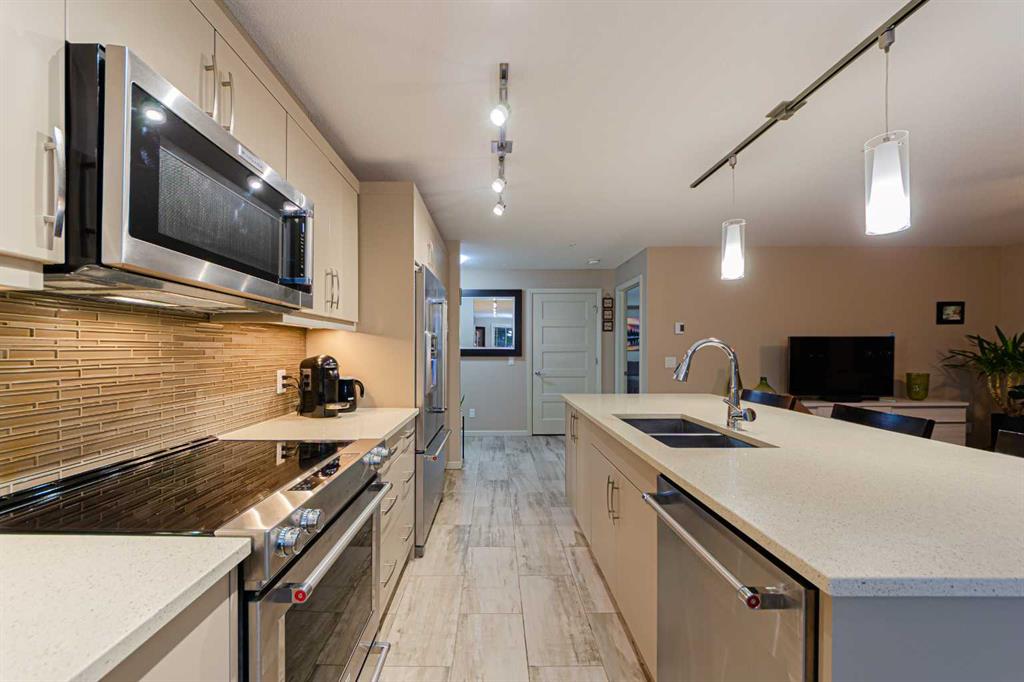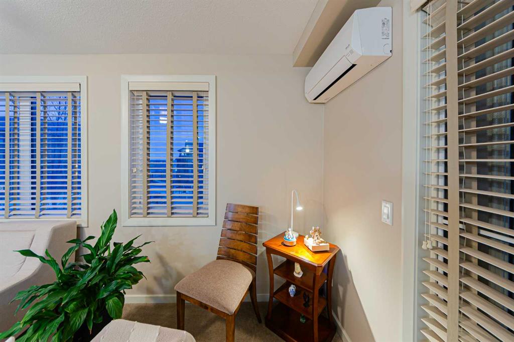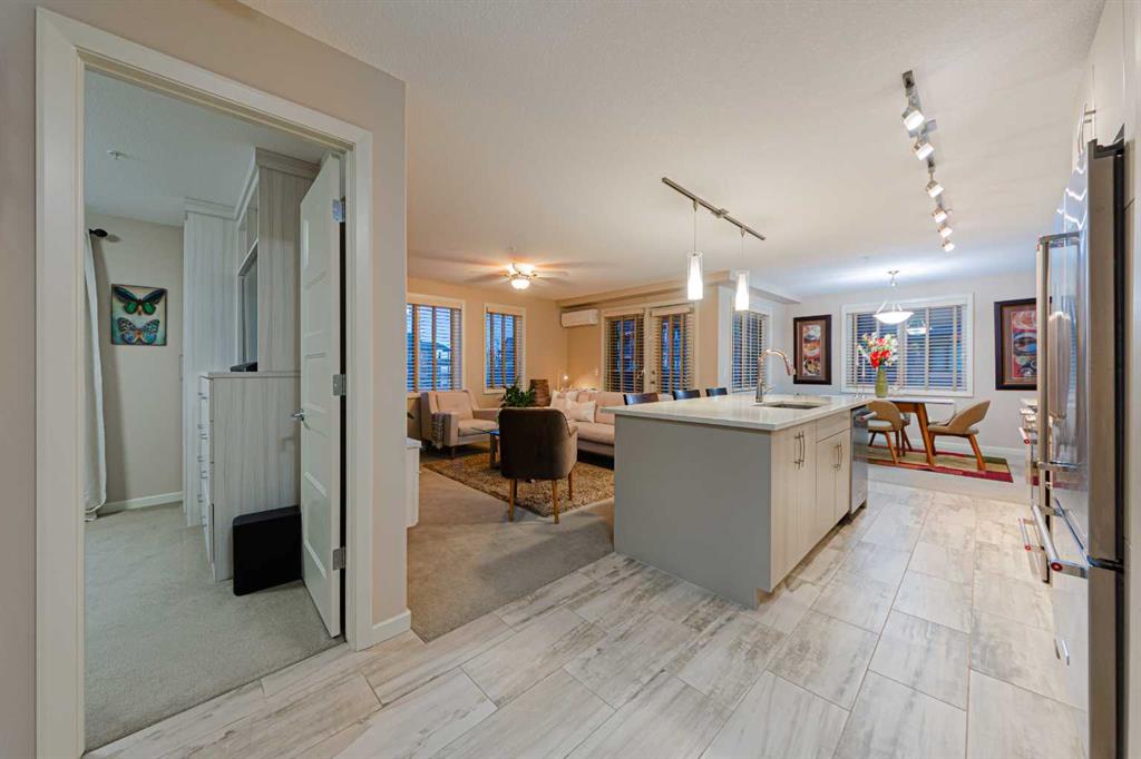 Welcome to this exceptional 2-bedroom, 2-bathroom corner unit in a highly sought-after 18+ building in NW Calgary. Offering 1,167 sq. ft. of beautifully maintained living space, this home showcases outstanding pride of ownership and a variety of thoughtfully designed custom upgrades. The open-concept layout is enhanced by abundant natural light from additional corner windows and a private setting with no immediate neighbours. The home features custom California Closets throughout, including a built-in Murphy bed in the second bedroom, a custom closet TV stand in the primary bedroom, and a sleek floating TV console in the living room. The modern kitchen combines elegance and functionality with an upgraded appliance package, quartz countertops, heated porcelain tile flooring, and custom window coverings. Year-round comfort is ensured with air conditioning and a convection floor heating system. Additional highlights include two side-by-side titled underground parking stalls, customized storage shelving, and a large private storage unit (4 × 5 × 8 ft) with a 93-year remaining lease. Step outside to your private balcony with gas BBQ hookup, perfect for relaxing or entertaining during Calgary’s warm summer evenings. Ideally located minutes from Beacon Hill Shopping Centre, with convenient access to Costco, Walmart, restaurants, and major amenities, this home offers the perfect combination of luxury, comfort, and convenience.