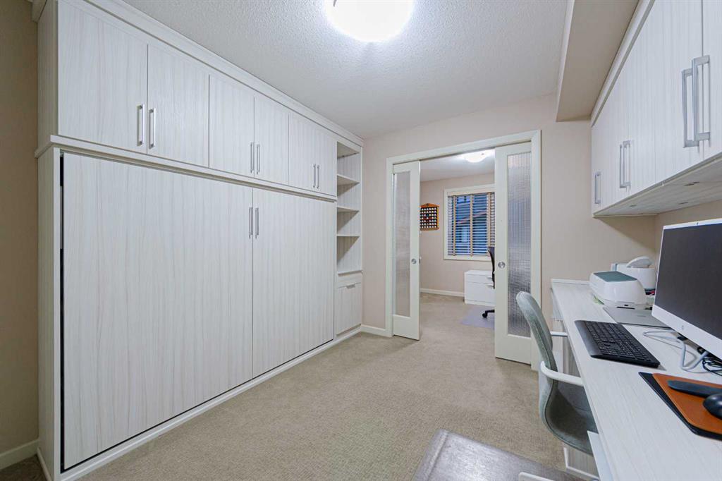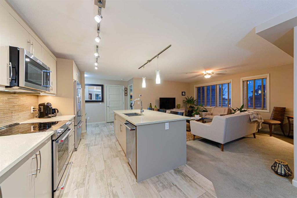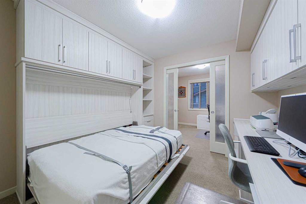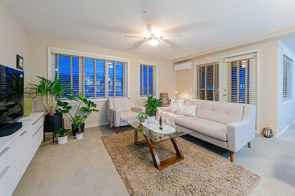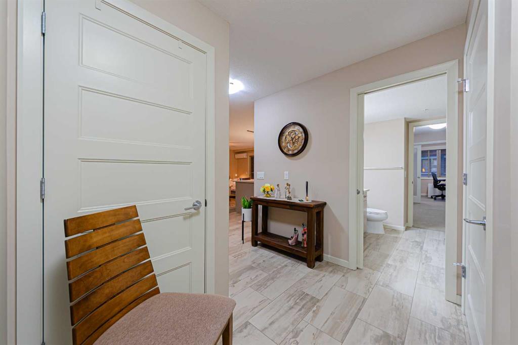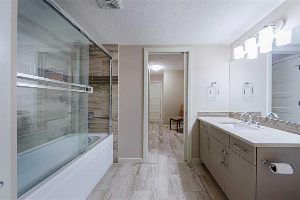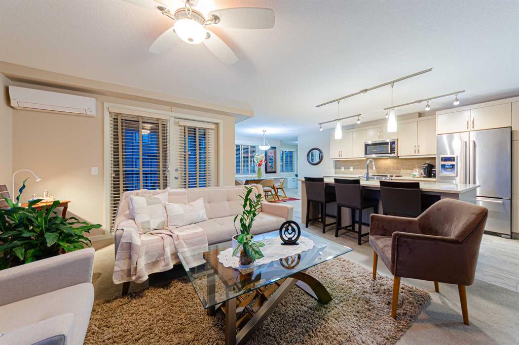 Welcome to this exceptional 2-bedroom, 2-bathroom corner unit in a highly sought-after 18+ building in NW Calgary. Offering 1,167 sq. ft. of beautifully maintained living space, this home showcases outstanding pride of ownership and a variety of thoughtfully designed custom upgrades. The open-concept layout is enhanced by abundant natural light from additional corner windows and a private setting with no immediate neighbours. The home features custom California Closets throughout, including a built-in Murphy bed in the second bedroom, a custom closet TV stand in the primary bedroom, and a sleek floating TV console in the living room. The modern kitchen combines elegance and functionality with an upgraded appliance package, quartz countertops, heated porcelain tile flooring, and custom window coverings. Year-round comfort is ensured with air conditioning and a convection floor heating system. Additional highlights include two side-by-side titled underground parking stalls, customized storage shelving, and a large private storage unit (4 × 5 × 8 ft) with a 93-year remaining lease. Step outside to your private balcony with gas BBQ hookup, perfect for relaxing or entertaining during Calgary’s warm summer evenings. Ideally located minutes from Beacon Hill Shopping Centre, with convenient access to Costco, Walmart, restaurants, and major amenities, this home offers the perfect combination of luxury, comfort, and convenience.