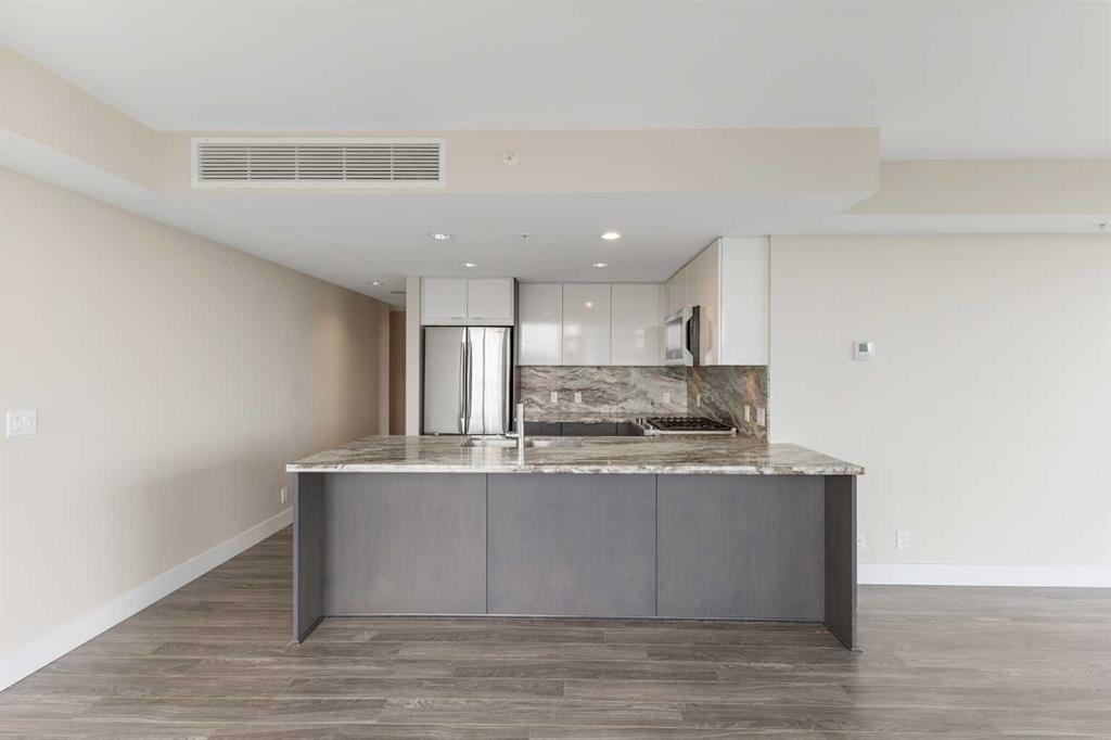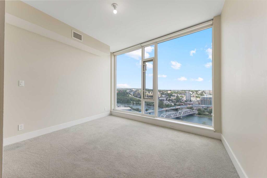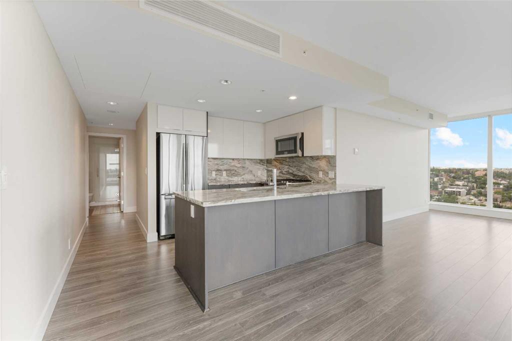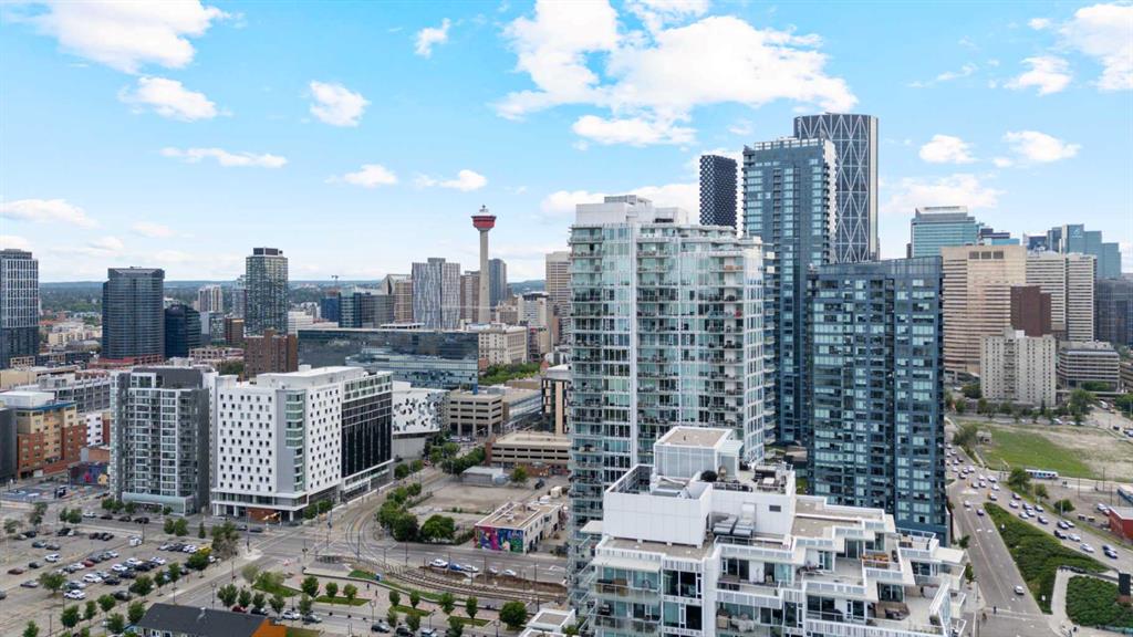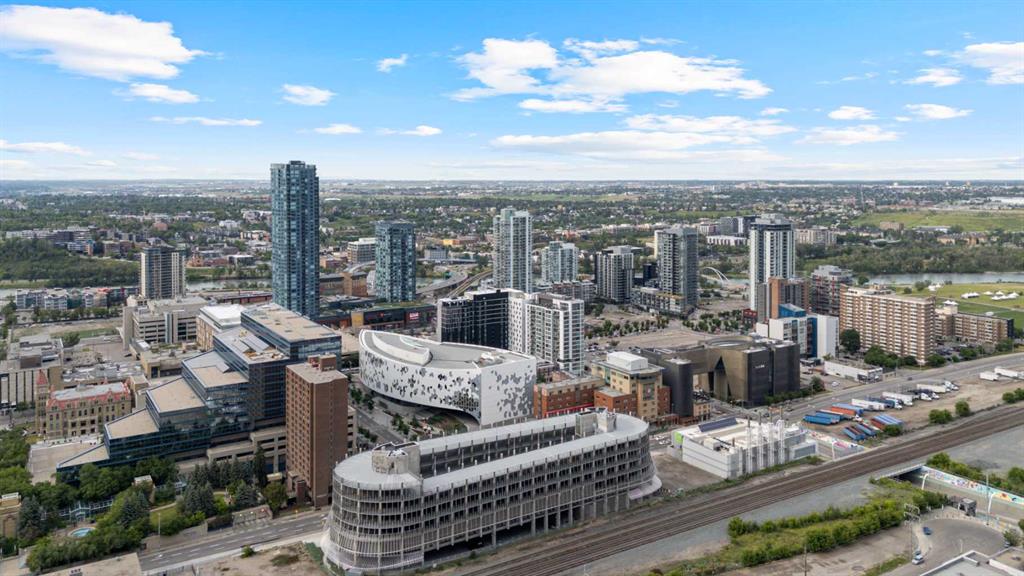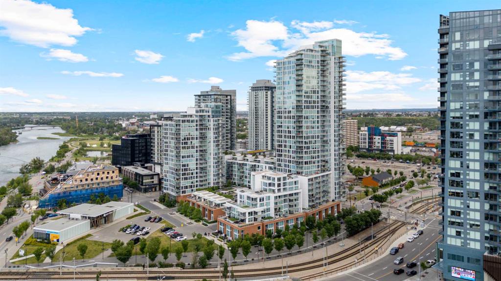 Welcome to your dream urban oasis in the heart of East Village. This stunning 19th-floor, 2-bedroom, 2-bathroom residence showcases breathtaking views of the Bow River and downtown skyline through expansive floor-to-ceiling windows that flood the home with natural light. Sleek laminate flooring throughout enhances the modern, open feel of the space. The contemporary kitchen is designed to impress, featuring granite countertops, a gas range stove, and ample storage—perfect for both everyday living and entertaining. The spacious bedrooms offer generous closet space, while the convenience of in-suite laundry adds to the home’s effortless functionality. Residents enjoy access to premium building amenities, including a state-of-the-art fitness centre and sauna. Located steps from the river pathways, dining, shopping, and downtown core, this home delivers the perfect blend of style, comfort, and urban lifestyle. Don’t miss this exceptional opportunity—schedule your private viewing today