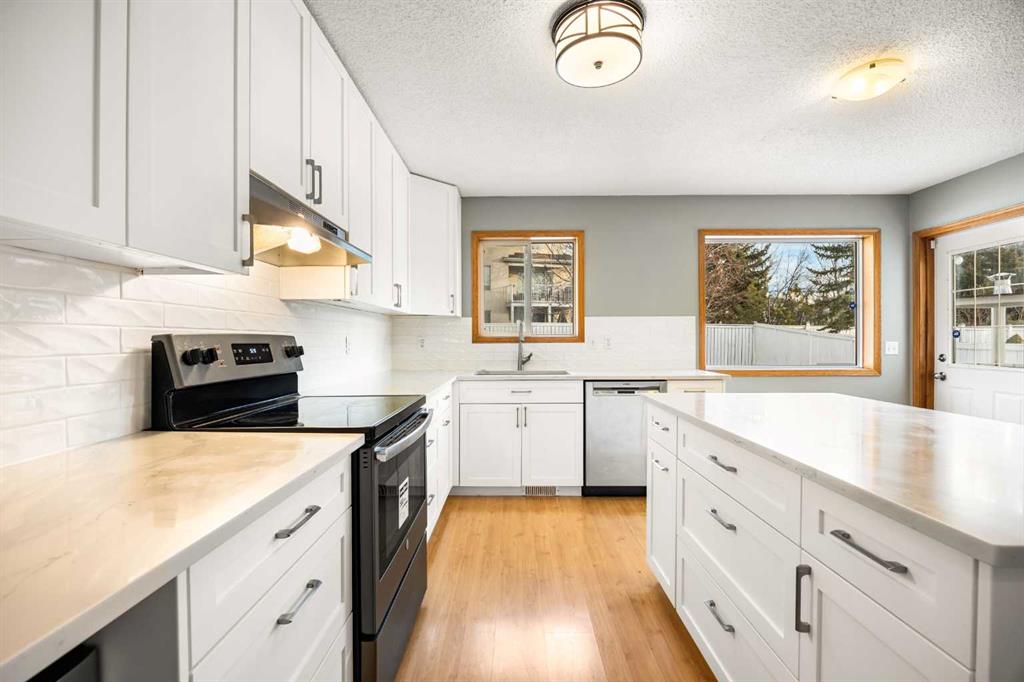 Watch your kids walk to school from this well-maintained family home located in the sought-after lake community of Arbour Lake, offering a rare 3+3 bedroom, 3.5 bath layout with over 2,740 sq ft of total living space—ideal for growing families, multigenerational living, or flexible work-from-home needs. The main level features a spacious and flexible Living and Dining room combination with a gas fireplace, creating an inviting space for family gatherings and entertaining. The Newer white Kitchen is equipped with ample of cabinets, a centre island, quartz countertops, stainless steel appliances, and pantry, while the Breakfast Nook leads directly to a large deck and backyard, perfect for seamless indoor-outdoor living. The overall layout feels open and spacious throughout the main level, which is completed by a powder room and a laundry room. On the upper level, the large Bonus room with vaulted ceiling provides an ideal space for family movie nights or relaxation. The Primary bedroom features a 4-piece ensuite with jetted tub and quartz countertop, while two additional well-sized Bedrooms share a 4-piece bath with skylight. The fully finished basement adds exceptional versatility, featuring a Recreation room, three additional bedrooms, and a 4-piece bath that are perfect for a big family. Step outside to the fully fenced and landscaped backyard, perfect for kids and outdoor enjoyment, and appreciate the convenience of a double attached garage. Recent upgrades include carpet (October 2020), roofing (April 2021), kitchen and bathroom vanities (August 2021), dishwasher (August 2022), and hot water tank (August 2022) with extended warranty until 2032. Living in Arbour Lake means enjoying year-round lake access, scenic walking paths, and a welcoming, family-focused community. This home is within walking distance to St. Ambrose School and YMCA, and close to parks, schools, Crowfoot shopping centre, the C-Train, major roadways, and everyday amenities, offering an ideal balance of lifestyle and convenience.