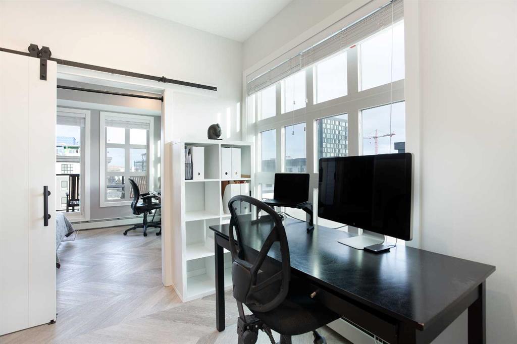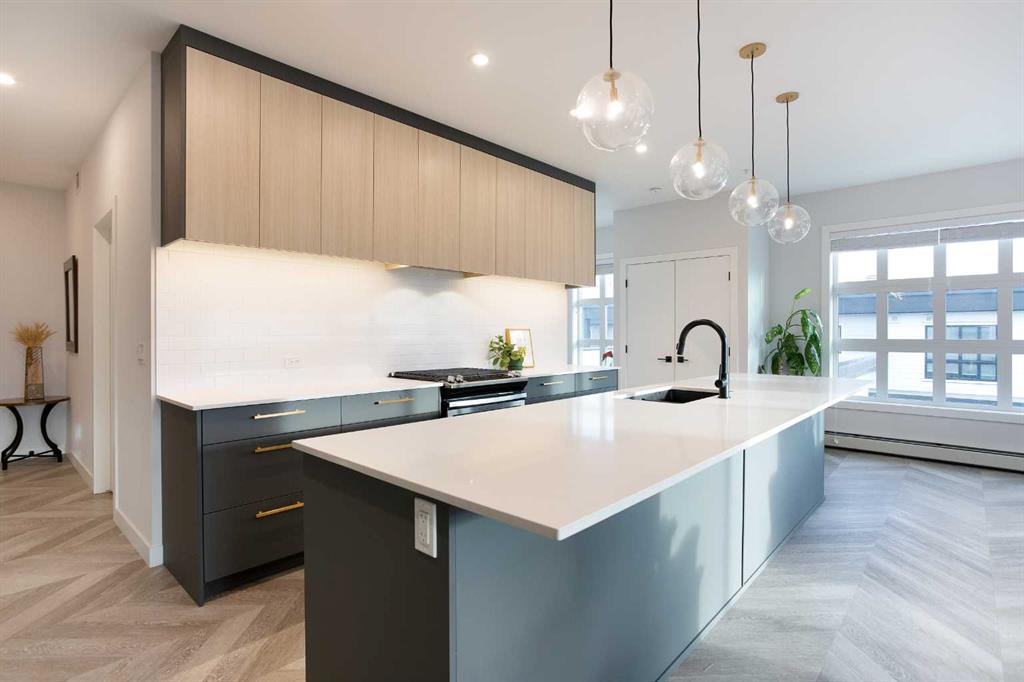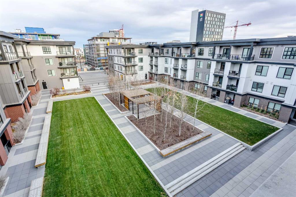 Welcome to Esquire in the University District! This CORNER UNIT, TOP-FLOOR PENTHOUSE is designed for luxury, style and comfort. The gourmet kitchen features a 12-foot central island, TWO built-in refrigerators, a gas range, a built-in oven, a built-in microwave and a bar fridge making entertaining and preparing meals a delight! The spacious living room features gorgeous herringbone flooring and a stylish electric fireplace with built-ins. TWO balconies provide beautiful views - one facing west with MOUNTAIN VIEWS! and the other facing east overlooking the courtyard and park. The primary bedroom has an OVERSIZED walk-in closet with custom built-ins and a luxurious 4-pc ensuite with a floor-to-ceiling tiled walk-in shower and dual sinks. The 2nd bedroom includes a murphy bed and has space for an office / study area. A 2nd 4-pc bathroom is in the hallway for added convenience. A laundry room, a spacious front closet and storage room and THREE underground STORAGE lockers ensure plenty of space for all your needs. TWO underground TITLED parking stalls are included. Loaded with amenities, this building offers a gym, a pet wash station, bike storage and tuning areas and a workshop. Conveniently located close to the University of Calgary, the Alberta’s Children’s Hospital, an urban dog park, Central Commons park, multiple shops, restaurants and grocery stores as well Market Mall, a daycare and the Cineplex VIP theatre. Accessing the rest of the city and downtown is a breeze with nearby transit routes and major road networks. This luxurious penthouse is waiting for you to call home! Call to book your private showing today.