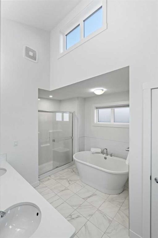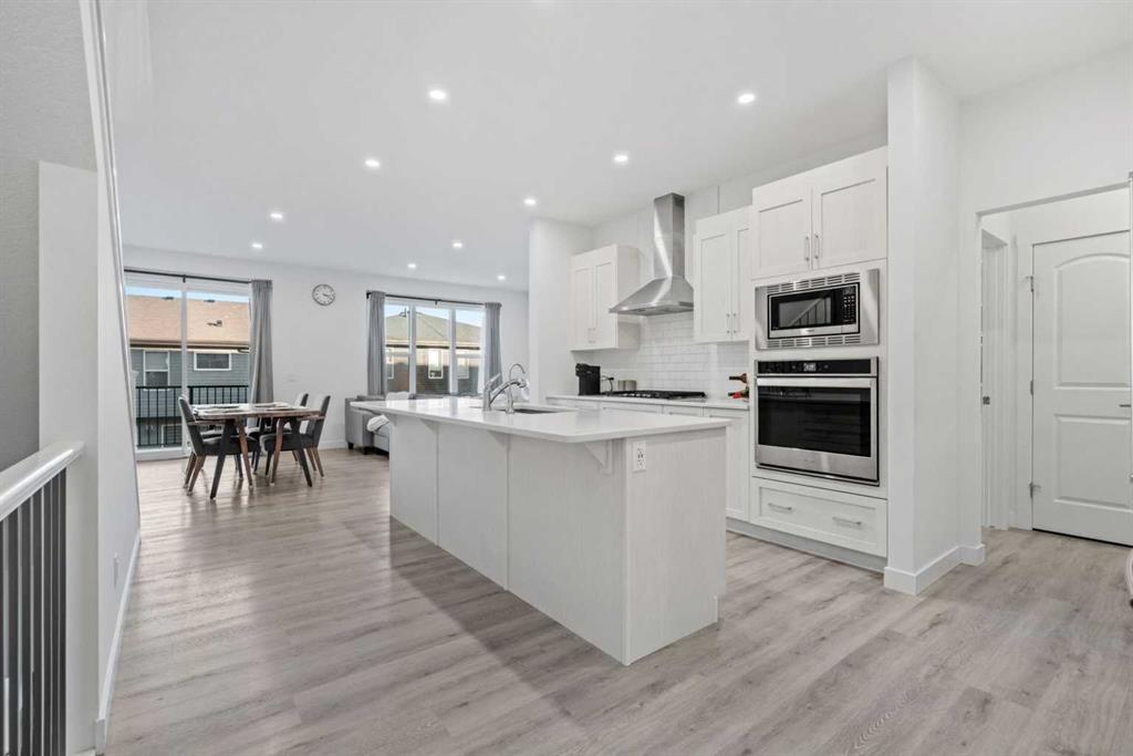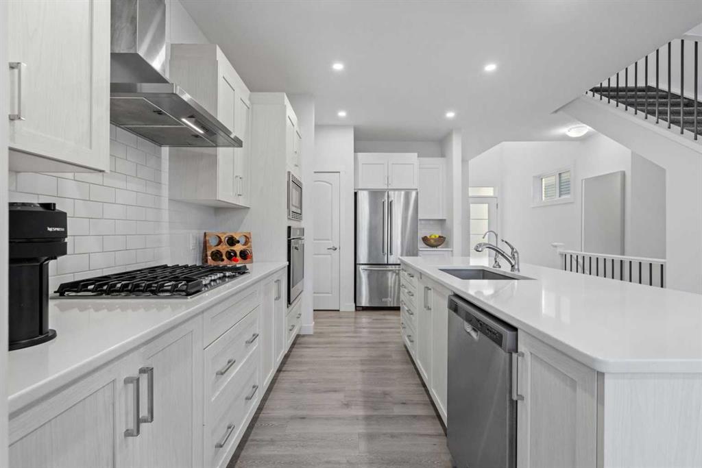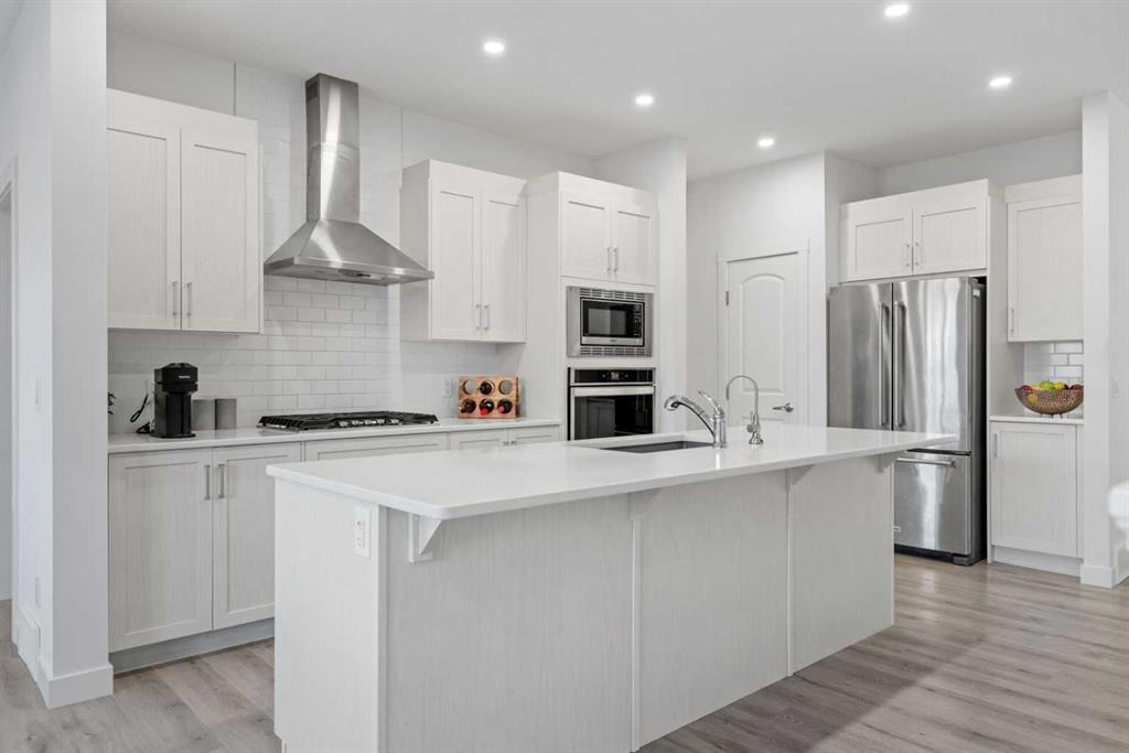 Designed with families in mind, this home offers a perfect blend of thoughtful functionality, MODERN ELEGANCE, and highlighted by SOARING VAULTED and HIGH CEILINGS. Welcome to this fully FULLY FINISHED WALKOUT BASEMENT home in the heart of Sage Hill, offering over 3,200 sq. ft. of total living space (including the basement). A spacious and inviting foyer sets the tone as you step inside, with clear sightlines guiding you to the bright, open-concept main living area at the rear of the home. Expansive windows fill the space with natural light throughout the day. The main floor features 9-foot ceilings, pot lights, and a dedicated office—ideal for working from home or a quiet study space. At the heart of the home is a chef-inspired kitchen that seamlessly blends style and practicality, showcasing a large central island, chimney-style hood fan, built-in wall oven and microwave, and a gas cooktop. The adjacent dining nook opens onto a deck with a gas BBQ line, extending your living space outdoors. Completing the main level are a functional mudroom with added storage shelving, connecting directly to the double attached garage with overhead storage & built-in shelving. Upstairs, upgraded metal railings lead to a thoughtfully designed second floor featuring three spacious bedrooms, a stunning VAULTED CEILING BONUS ROOM, and a main bathroom. The luxurious primary suite offers a private retreat with a spa-like ensuite (with Vaulted / High ceilings), including a soaker tub, standalone shower, dual vanities, and a generous walk-in closet with direct access to the separate laundry room, complete with a sink and extra storage. The professionally finished walkout basement adds outstanding flexibility, featuring a bedroom, full bathroom, office, recreation/exercise area, and ample storage, with direct access to a concrete patio beneath the deck. Additional upgrades include TRIPLE-PANES windows, central air conditioning, a water softener, water filtration, and an EXTERIOR HOT WATER TAP. Major recent updates include a NEW ROOF (2025), NEW SIDING (one side, 2025), and a NEW GARAGE DOOR (2025). Located just minutes from playgrounds, parks, walking trails, and scenic ponds, this home also offers exceptional convenience to everyday amenities including Walmart, H Mart, Paris Baguette, Costco, T&T Supermarket, Creekside, Sage Hill Quarter, and Beacon Hill Shopping Centre. Enjoy quick access to Stoney Trail and Shaganappi Trail, making commuting across Calgary seamless, with YYC International Airport just a short drive away. Chek out Virtual Tour!