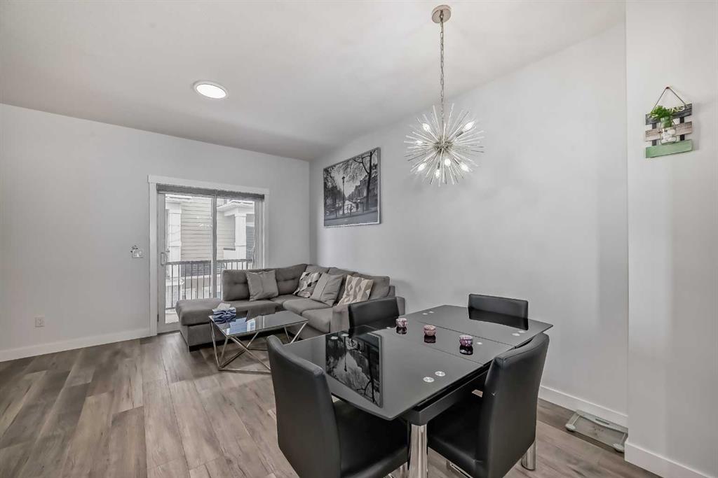 Welcome to this beautifully crafted modern Townhouse featuring 3 bedrooms, 3 full bathrooms, and a DOUBLE TANDEM GARAGE in the sought-after Skyview Ranch NE community in Calgary. Blending style with practicality, this home provides generous space and thoughtful upgrades throughout. The main level includes a spacious double tandem garage with extra storage, perfect for vehicles, tools, or seasonal. items. The second level showcases a chef-inspired kitchen with glossy DUAL TONE CABINETRY, a large ISLAND WITH QUARTZ COUNTERTOPS, sleek STAINLESS STEEL APPLIANCES, a modern range hood, and ample counter and storage space. The open-concept living and dining areas are filled with natural light through oversized windows and feature a fireplace that adds warmth and character. Elegant LVP flooring enhances the modern aesthetic. This level also offers a bedroom and a full bathroom with a standing shower, ideal for guests, in-laws, or a home office. Upstairs, the third level provides privacy and comfort with TWO SPACIOUS PRIMARY BEDROOMS, each with its OWN PRIVATE ENSUITE bathroom. A conveniently located laundry room adds practicality. Location is key, and this home excels in that regard. You’re within walking distance of Prairie Sky School, Apostles of Jesus School, and Kidz Space Daycare, making it perfect for families. Just a minute away, a vibrant shopping plaza offers grocery stores, banks, cafés, and a variety of dining options. Calgary International Airport is just 10 minutes away for travellers. Downtown Calgary is within 20 minutes, with quick access to Deerfoot Trail and Stoney Trail, ensuring easy connectivity. With modern finishes, a versatile layout, a prime location, and convenience, this home has everything you need. Whether you’re a first-time buyer, a growing family, or an investor, this is an exceptional opportunity to own a unique home in Skyview Ranch. Don’t miss your chance to make it yours!