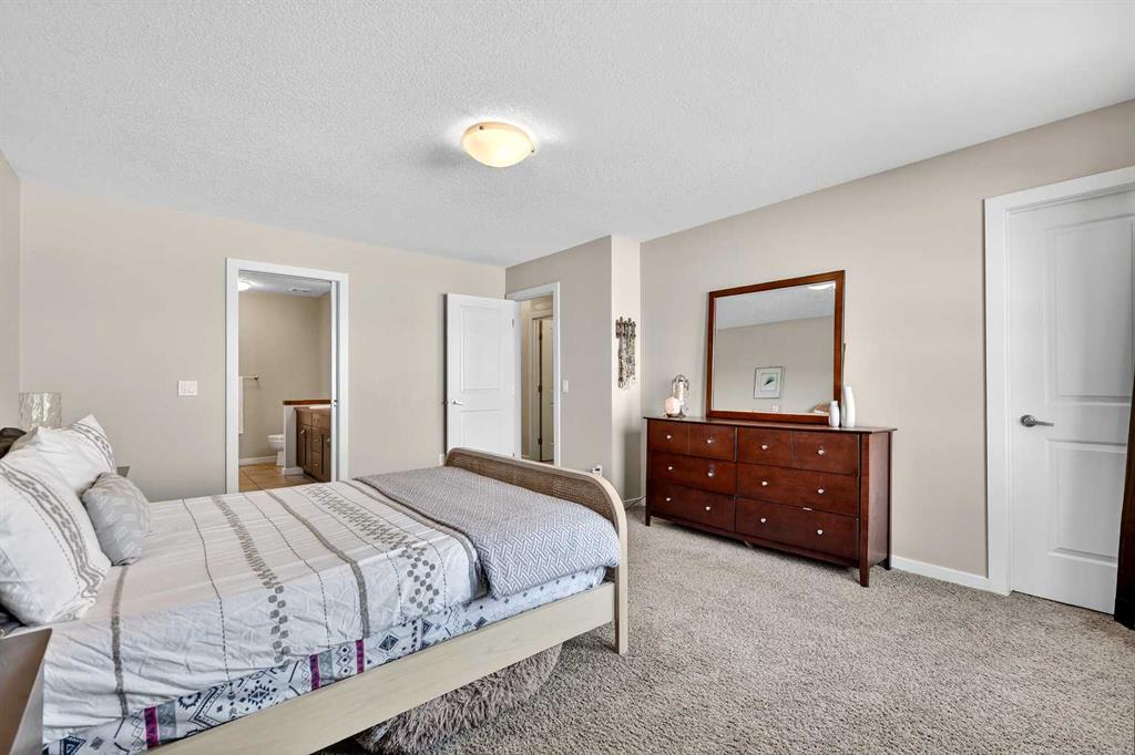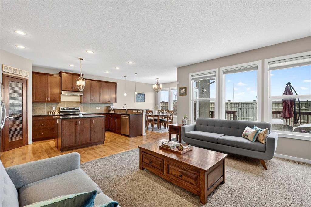 Welcome to this exceptional family residence in the sought-after lake community of Mahogany, perfectly positioned on a quiet street backing onto open green space with no rear neighbours. Offering just under 3,200 sq. ft. of fully developed living space, this beautifully appointed 6-bedroom, 3.5 bathroom home delivers the ideal balance of functionality, comfort, and refined design. Enjoy a prime location just minutes from 52 Street and Stoney Trail, and within a short walk to West Beach, Mahogany’s main shopping district, and the amenities, dining, and boutiques of Westman Village. The main level welcomes you with a spacious foyer and a bright front office featuring custom California Closets—perfect for working from home. The heart of the home is the chef-inspired kitchen, showcasing ceiling-height cabinetry, granite countertops, a walk-through pantry, a large eat-up island, and an abundance of prep and storage space. A sun-filled dining area seamlessly connects to the cozy family room, complete with a gas fireplace, creating a warm and inviting atmosphere for everyday living and entertaining. Upstairs, the primary retreat offers stunning mountain views, a spa-like 5-piece ensuite with his and her sinks, a soaking tub, walk-in shower, and an oversized walk-in closet. Three additional bedrooms, a full 4-piece bathroom, a generous bonus room with oversized windows, a sunny flex nook, and a well-equipped laundry room complete this level. The fully finished legal basement suite provides excellent versatility for extended family, guests, or potential rental income. With its own separate entrance, it features a modern kitchen, separate laundry, two spacious bedrooms, a 4-piece bathroom, and a comfortable living area. Step outside to a private backyard oasis with a cedar deck and open green space behind—ideal for summer gatherings or quiet relaxation. The oversized double garage includes custom shelving and a built-in Level 2 EV charger, while the extended driveway accommodates up to three additional vehicles. Additional highlights include central air conditioning, 9-foot ceilings, gas lines on both the main and basement levels, Kinetico water softener, Hunter Douglas blinds with lifetime warranty, and a Smart Home system with thermostats on each level. Move-in ready and impeccably maintained, this outstanding home offers space, style, and an unbeatable location in one of Calgary’s most desirable lake communities.