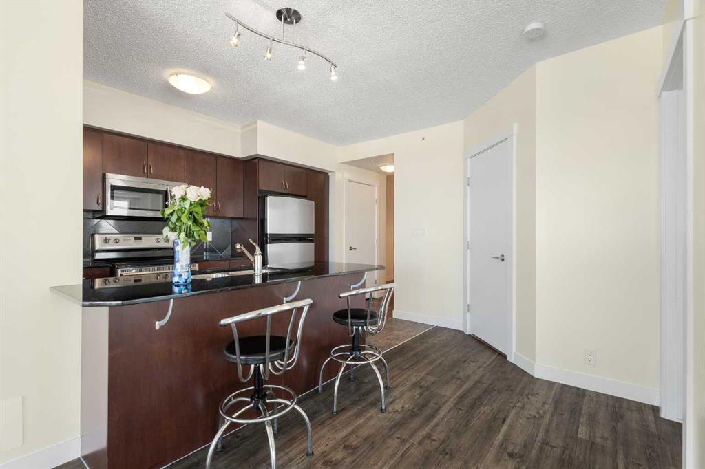 Discover urban living at its finest in this beautifully updated 10th-floor corner unit, ideally positioned next to the Heritage C-Train Station. Recently upgraded with all new windows, this bright and spacious home is filled with natural light throughout the day. The welcoming foyer offers two large closets, a cozy seating area, and convenient in-suite laundry. The modern kitchen features granite countertops, stainless steel appliances, and stylish glass-front cabinetry—perfect for everyday cooking and entertaining. The open-concept living and dining areas provide a comfortable and functional layout, offering excellent bedroom separation. The east-facing primary bedroom enjoys morning sun and includes a private 4-piece ensuite. The generous second bedroom, with its north-facing exposure, is ideal for guests, a home office, or additional family members. Step onto the east-facing balcony to enjoy sweeping city views, complete with a gas line for your BBQ—the perfect spot for quiet mornings or warm summer evenings. Residents benefit from exceptional convenience with The Shoppes at London Square just steps away, offering dining, salons, pet services, a medical clinic, and a major grocery store. Save-On-Foods is easily accessible through the heated parkade, allowing for year-round comfort. Building amenities include a heated underground parkade for owners and visitors, secure bike storage, a bright common sunroom, and a rooftop patio with panoramic views. A covered pedestrian bridge connects directly to the C-Train, providing quick access to downtown, the University of Calgary, SAIT, and local amenities. This impressive corner unit combines comfort, convenience, and an unbeatable location. A fantastic opportunity for first-time buyers, investors, and those seeking low-maintenance city living.