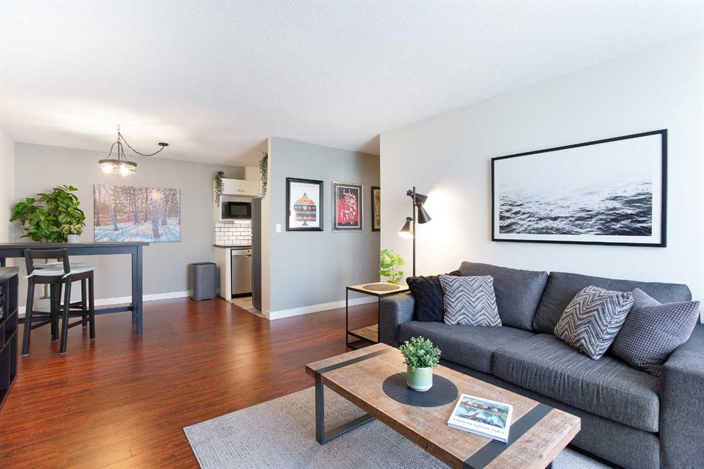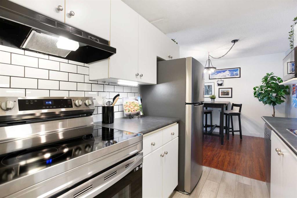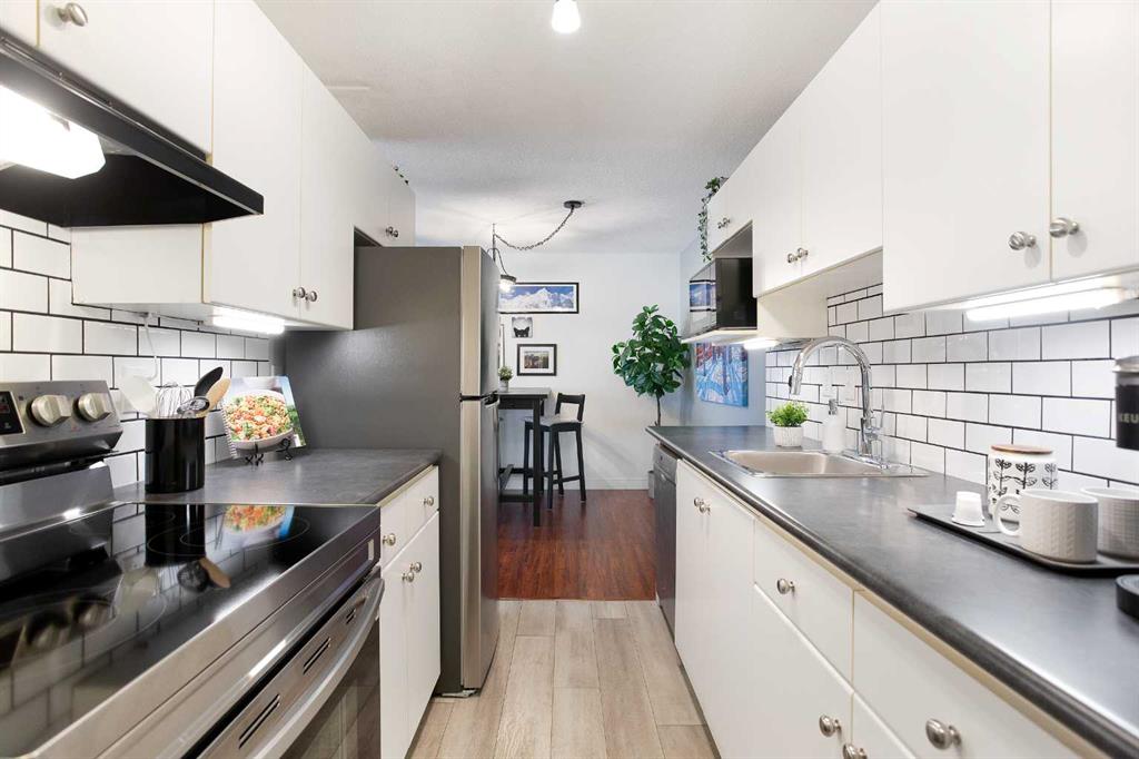 Welcome to Glenmore on the Parc in sought-after Glamorgan—80 Galbraith Drive SW, Unit 22C—a bright top-floor 2-bedroom, 1-bath condo offering 857 sq ft of comfortable, low-maintenance living. The east-facing exposure brings in beautiful morning light while maintaining a private-feeling outlook. The kitchen is a standout with newer countertops and flooring, crisp subway-tile backsplash, and updated appliances including a newer fridge and stove—perfect for everyday cooking in a clean, modern space. The layout flows into a spacious living room with a large window for natural light, plus two generous bedrooms with great storage. You’ll also appreciate the convenience of in-suite laundry. Key upgrades include patio door and windows (2013) for added comfort and efficiency. Enjoy the practicality of an assigned parking stall and dedicated storage, all in a location close to Mount Royal University, quick routes to downtown, excellent transit access, and nearby shopping and amenities in WestHills/Signal Hill.