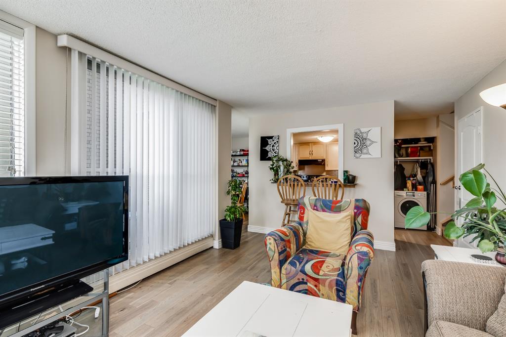 Low-maintenance condo living comes together with an unbeatable inner-city location in this multi-level, 2 bedroom end unit within the well-managed Executive Estates building. Set directly across from Connaught Park and just moments from Calgary’s most energetic entertainment district, everyday life here is surrounded by nightlife, dining, pubs, cafés and an ever-changing mix of local shops. Inside, updated flooring anchors an open and light-filled layout designed to feel spacious and welcoming. The living area is wrapped in a full wall of windows that capture abundant natural light and open onto a sunny south and west facing balcony, extending the living space outdoors. The galley-style kitchen is thoughtfully arranged for both function and flow, featuring stone countertops, full-height cabinetry and a breakfast bar that connects seamlessly with the living room, while the adjacent dining area offers additional space for meals and gatherings. Upstairs, 2 bright and generously sized bedrooms are paired with a full 4-piece bathroom finished with updated stone countertops. In-suite laundry, heated underground parking and a dedicated storage locker add everyday practicality and convenience. The building’s fun and stylish lobby creates a polished first impression and reflects the pride of ownership throughout. Walk or bike downtown, access the river pathways with ease, or enjoy a relaxed stroll along 17th Avenue’s award-winning restaurants and cafés, all before returning home to a quiet, secure building. An ideal opportunity to move in and enjoy vibrant urban living with comfort and ease.