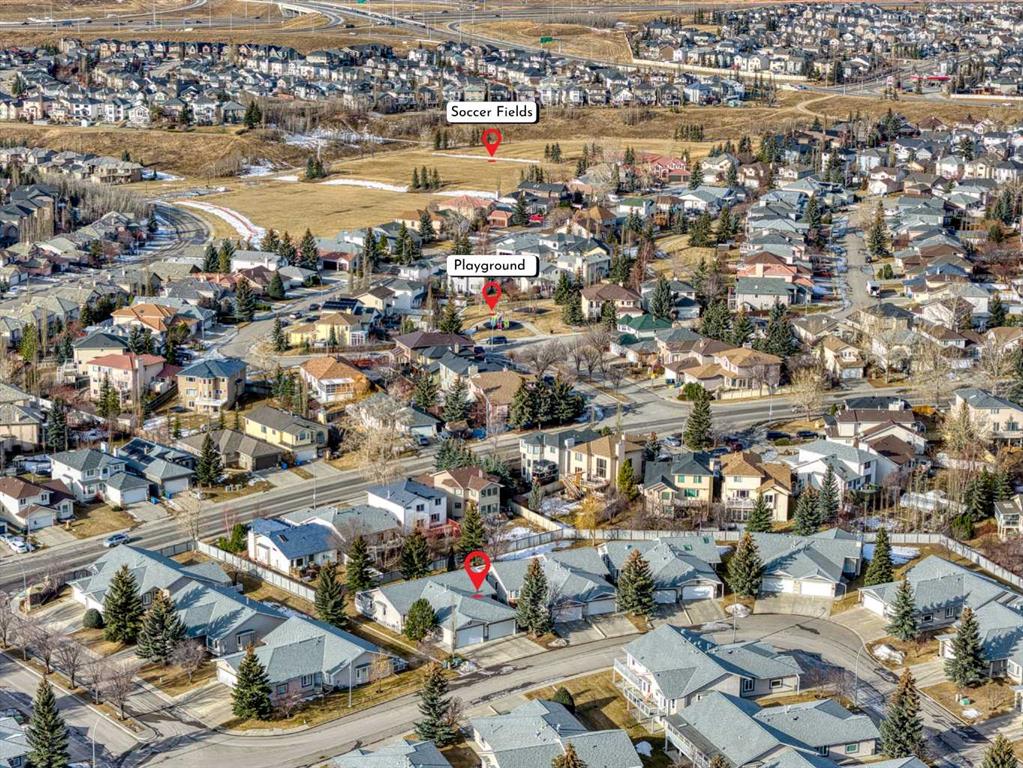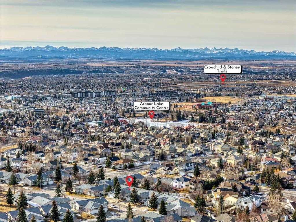 Located in Arbour Lake—Northwest Calgary's only lake community—this home in Arbour Cliff Villas is an immaculately maintained semi-detached bungalow providing low-maintenance living. The main floor spans just under 1300 sq ft, featuring a spacious family room and adjoining dining room with vaulted ceilings. The large kitchen boasts stainless steel appliances, ample counter and cupboard space, abundant natural light from numerous windows, and a breakfast nook for casual dining. The primary bedroom includes an ensuite bathroom and walk-in closet, with a second main-floor bedroom next to the full main bathroom. Main-floor laundry in the mudroom offers counter space, cabinetry, and a linen closet. The basement features a large finished family room, two-piece bathroom, and workshop equipped with built-in workbenches and bright task lighting—ideal dimensions and setup for easy conversion to a third bedroom. Numerous upgrades throughout the years include hardwood flooring throughout the living room, dining room, and bedrooms; upgraded tile flooring in the kitchen; and a new furnace and central air conditioner (2024). Additional features include Gemstone lighting, an insulated and drywalled double-car garage, backyard deck, and gas outlet for barbecuing. All interior Poly-B plumbing lines fully replaced with modern materials to all fixtures; main municipal supply line remains Poly-B. Arbour Cliff Villas HOA ($150/month) handles snow removal, lawn care, and underground sprinkler maintenance. Arbour Lake residents enjoy exclusive access to a private lake, beach, clubhouse, tennis courts, skating, and fishing for an annual fee of $317.63 (incl. GST). Prime location near Crowfoot Crossing shopping, CTrain, and restaurants, with quick Stoney Trail access to the mountains.