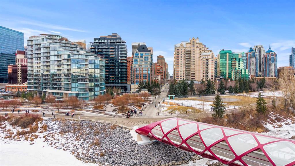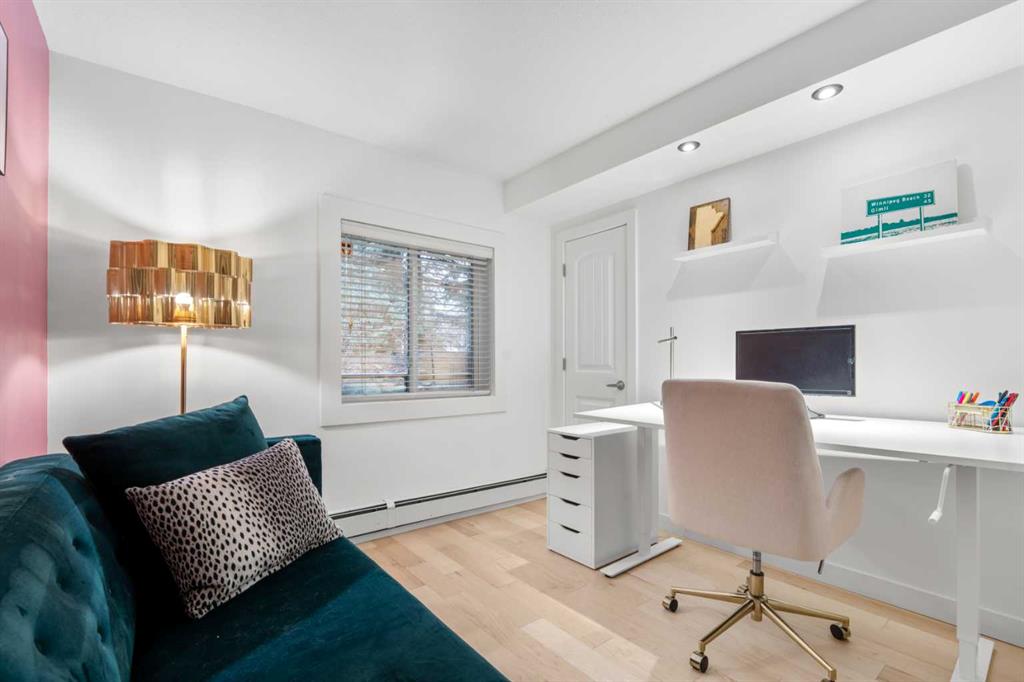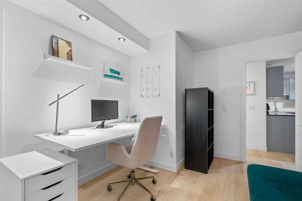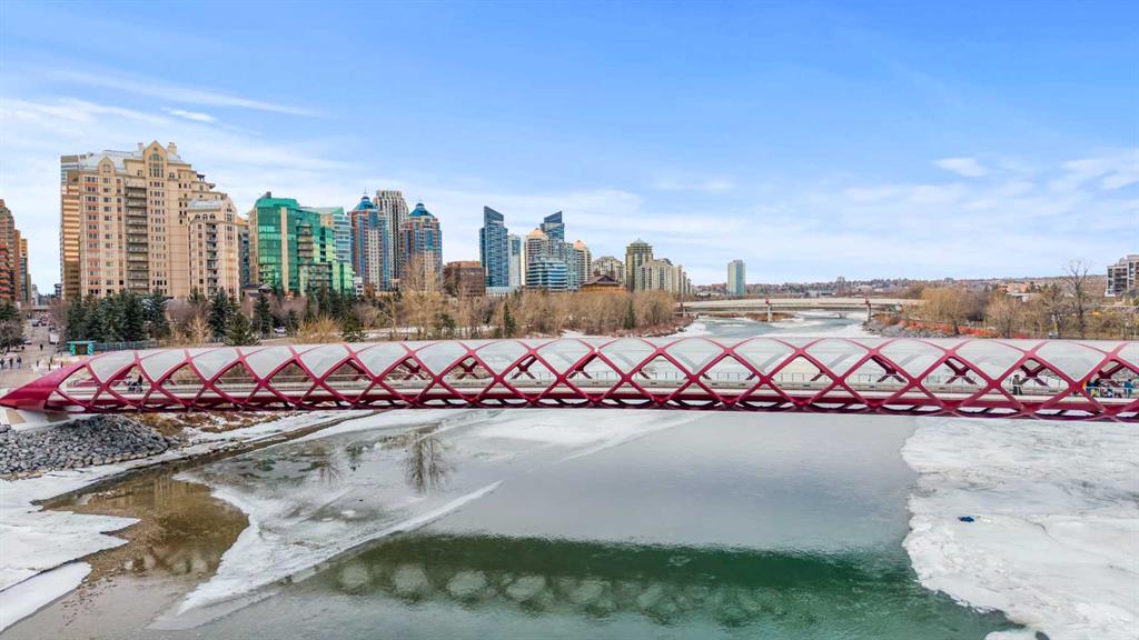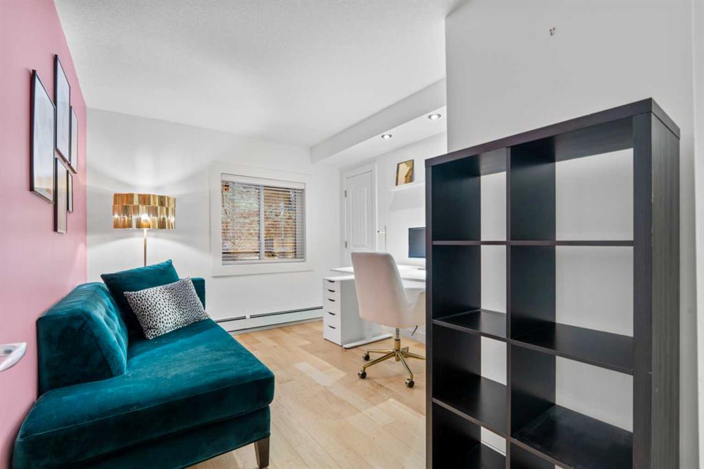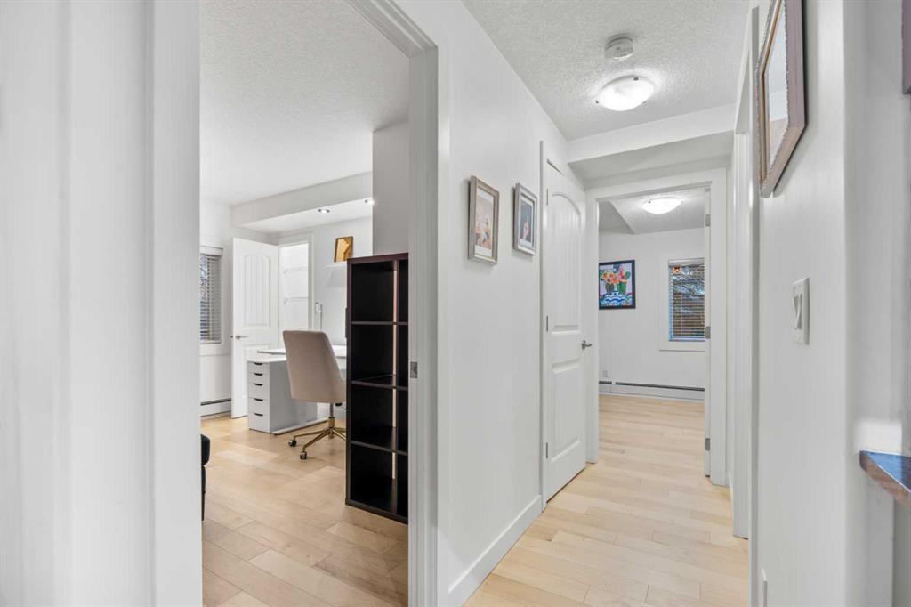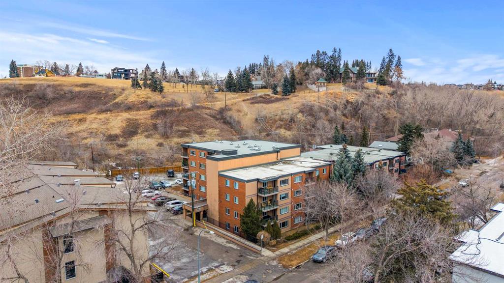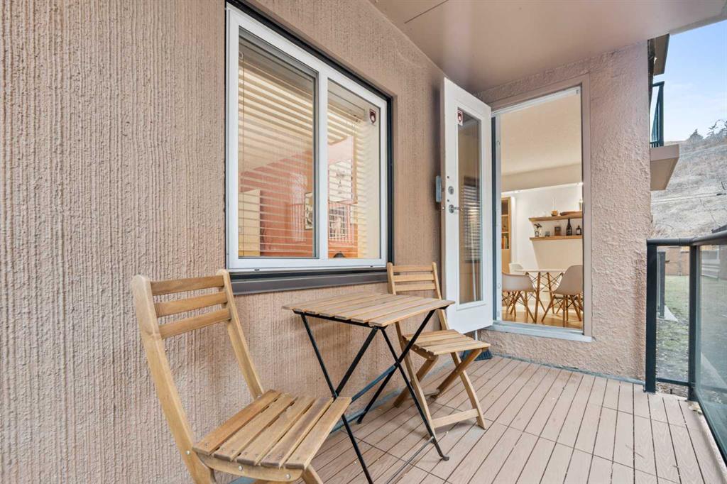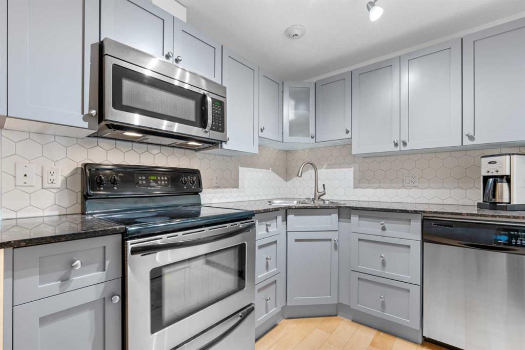 Fantastic Sunnyside Condo in an amazing location – backing on McHugh Bluffs and Sunnyside pathway system, with walking trails and parks, and downtown, at your doorstep. Experience main floor living with this immaculate, move-in ready 2 bedroom condo offering you everything you could need for those looking for the urban vibe while still being surrounded by trees and greenery. Enter through the secure building entrance, down a short hallway, and enter into the generous entry way of this condo. The warmth of the hardwood flooring blends beautifully with the modern décor. Boasting an open concept, bright living room that can accommodate a multitude of sofa configurations, two glass-door cabinets are included that can flank your TV, a cozy dining nook, lovely kitchen with stylish grey cabinetry, tile backsplash, granite countertops, and stainless steel appliances. You will enjoy the kitchen for its efficiency and the full size pantry for extra convenience and storage. The large 4 piece bathroom has tiled walls, a large soaker tub and equally large tiled shower, and a shelved storage area for towels, supplies, etc. The large primary bedroom has a very spacious walk-in closet with built-ins, shelves and drawers, and a second deep closet for added storage – of which there is no shortage of in this unit. The second bedroom is an ideal flex room:: keep it as a bedroom, use it as an office, convert it to a home gym, whatever your heart desires. The in-suite laundry includes a stacked washer and dryer so no leaving home to get caught up on laundry after your morning run. It has to be stated that this home is perfect for the first-time home buyer, someone wishing to downsize, the downtowner, or an investor – lots of options here. Discover everything this home has to offer, with walking distance to grocery stores, cafes, minutes to U of C, SAIT, Foothills and Children's hospital. Walk to Prince’s Island Park to enjoy the summer festivities, discover Sunnyside and Kensington community offerings, knowing that transit is minutes away. Check out the interactive iGuide for a virtual walkthrough of this property – you won’t be disappointed.