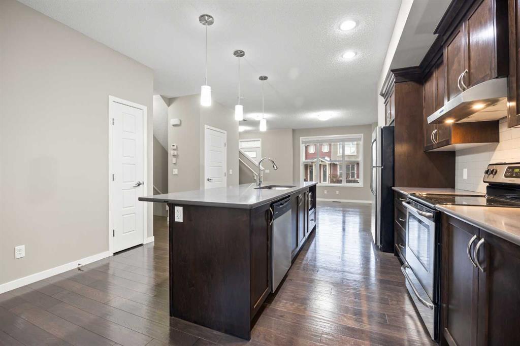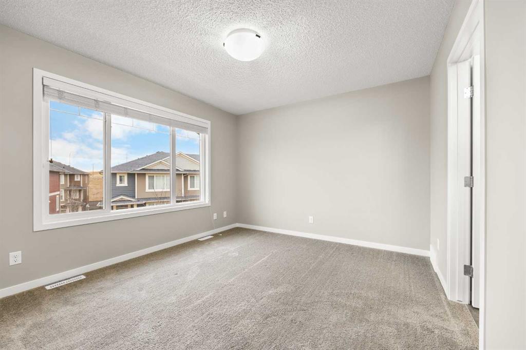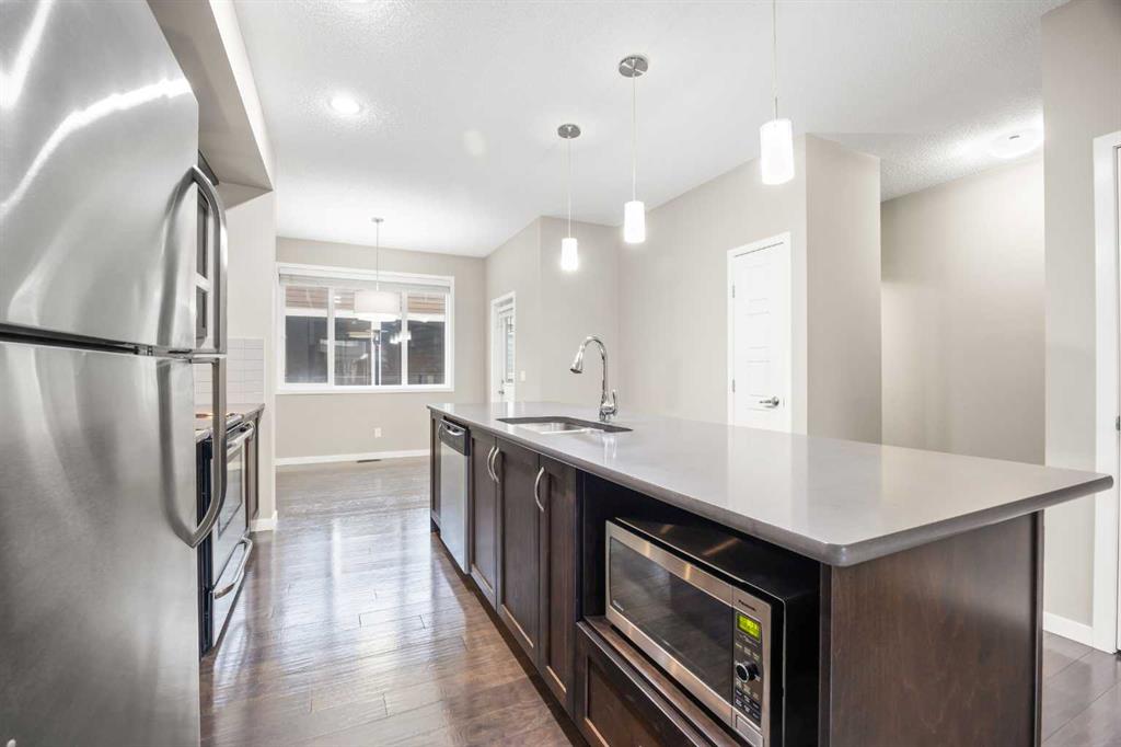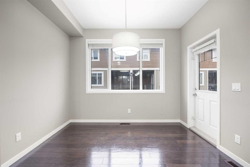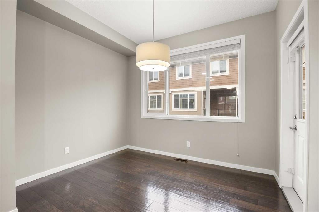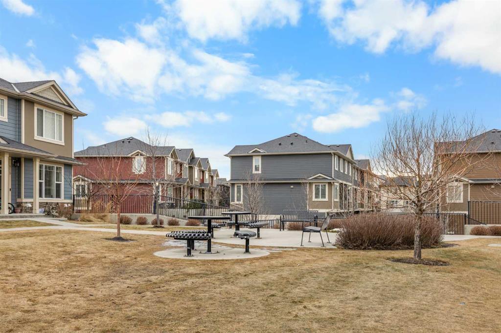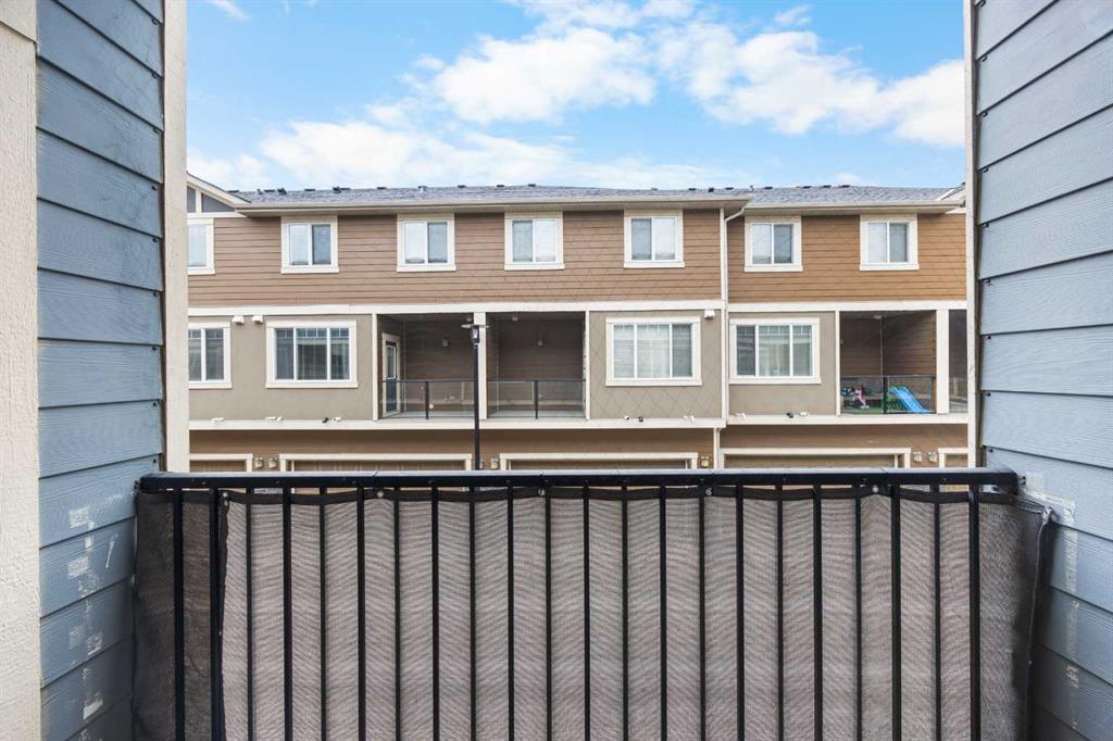Welcome to this bright and inviting 2-storey townhome in the sought-after community of Panorama Hills, offering 3 bedrooms, 2.5 baths, and 1,333 sq ft of well planned living space. Ideally located just steps from a tranquil courtyard park with seating area—perfect for outdoor relaxation and community connection. Step inside to the main level and be greeted by an open floorplan with 9-foot ceilings and elegant engineered hardwood flooring throughout. The sunny South-facing Living room fills the space with natural light, seamlessly flowing into the well-appointed Kitchen featuring a centre island, quartz countertops, stainless steel appliances, and ample cabinetry for all your storage needs. The adjacent Dining room opens to a private balcony with gas hookup—perfect for summer grilling or enjoying your morning coffee. A convenient half bath completes this level. On the upper level, the spacious Primary bedroom features a large window, a walk-in closet with window for added light, and a full ensuite bath with quartz countertops. Two additional bedrooms and a 4-piece bath provide comfortable space for family or guests. The partially finished basement offers practical living with Laundry access and leads to the Double attached garage, complete with built-in ceiling shelves for extra storage. Located in Panorama Hills, this townhome offers the perfect blend of low-maintenance living and family-friendly convenience. Enjoy close proximity to top-rated schools, Panorama Hills Golf & Country Club, shopping at Superstore and Country Hills Village, Vivo Recreation Centre, transit, and major roadways including Stoney Trail. This move-in ready home combines open-concept living, sunny South-facing light, peaceful courtyard park setting, and an unbeatable location in one of Calgary's most desirable Northwest communities.