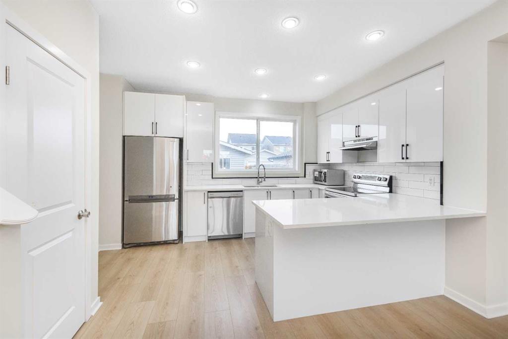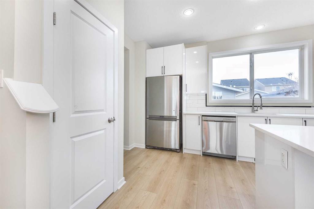 Welcome to your new home in Skyview Ranch, one of Calgary’s most vibrant and family-friendly communities! Conveniently located right in front of a bus stop and park, this home is perfect for families and commuters alike. Everyday essentials are closer than ever, with schools, parks, shopping, and amenities just minutes away. Step inside to a bright, open-concept layout filled with natural light from large windows, complemented by brand-new LVP flooring throughout the home. The stunning bright white kitchen features new countertops, brand-new cabinets, and stainless steel appliances, making it both stylish and functional. A half bathroom and a built-in computer desk complete the main level. Upstairs, the spacious primary bedroom offers a huge walk-in closet and a luxurious 4-piece ensuite bathroom. The second level also includes two generously sized bedrooms and an additional 4-piece bathroom, ideal for a growing family. New roofing, siding & cedar wood done on December 2025. The home also boasts a fully finished, illegal basement suite with a separate side entrance, featuring a 2-bedrooms, new kitchen countertops, brand-new cabinets, bathroom, and living area. This is a move-in-ready home that truly has it all location & upgrades.!!