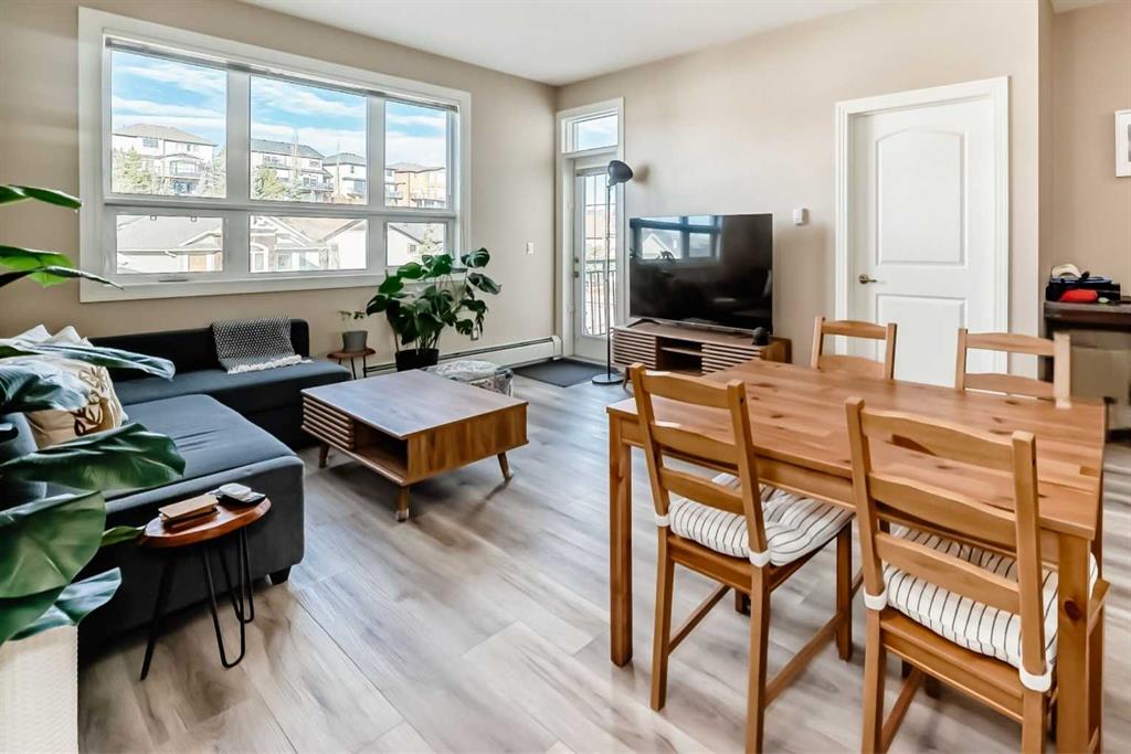 Welcome to Robson Summit of Montreux, located in the highly sought-after community of Springbank Hill, where comfort, convenience, and lifestyle come together. This well-designed 2-bedroom, 2-bathroom residence features an open-concept layout that thoughtfully balances functional living with privacy, with the main living and dining area separating the two bedrooms. The kitchen is both stylish and practical, offering a built-in wall oven, electric cooktop, stainless steel refrigerator and dishwasher, microwave hood fan, and a breakfast bar that is perfect for everyday living and entertaining. A dedicated built-in office space provides the flexibility to comfortably work from home or manage daily tasks with ease. Step outside to your private northwest-facing balcony, where you can enjoy mountain views and peaceful residential surroundings—an ideal setting for morning coffee or evening relaxation. Additional highlights include in-suite laundry, titled underground parking, and a titled storage locker, providing exceptional convenience and functionality. Residents also enjoy access to a fitness facility, landscaped courtyard, and secure building amenities. Ideally located just minutes from Aspen Landing, the West District, restaurants, shopping, and scenic walking paths, this home offers the perfect balance of urban convenience and natural surroundings. An outstanding opportunity for professionals, downsizers, or investors alike.