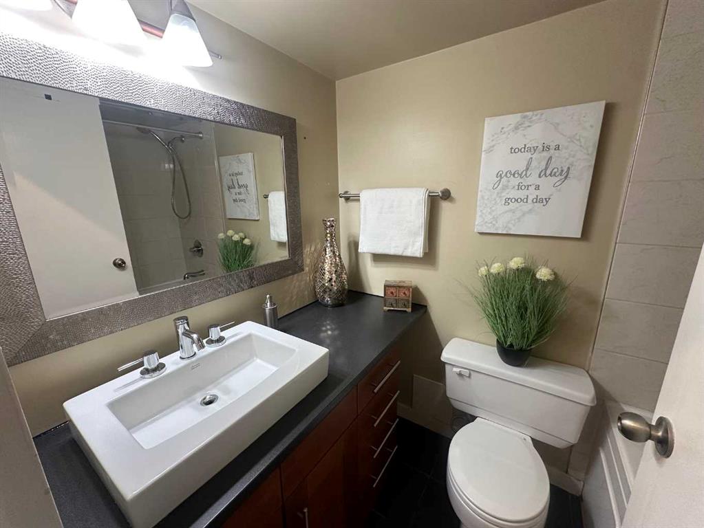 Wow, what an absolutely gorgeous condo!!! This spectacular Penthouse unit is totally updated & modern, with thousands of dollars in renovations recently spent to create one of the most hip & stylish homes around! SHOW SUITE CONDITION. This wonderful condo features deluxe laminate hardwood floors, a very bright & open kitchen with raised eating bar, new cabinets & counter tops, a mosaic tile backsplash, stainless steel appliances, and a spacious living room with a sunny south facing balcony. Located in the very popular concrete building THE PALISADES. The complex is extremely well maintained and boosts a very healthy 2.5 million dollar reserve fund. The building features a beautiful indoor salt water pool, a sauna, large exercise facility. Condo fees include all the basics including electricity. Only steps to the trendy shops & restaurants of 17th Avenue or a 5 min walk to downtown Calgary. THIS IS THE HOME YOU'VE BEEN DREAMING OF...