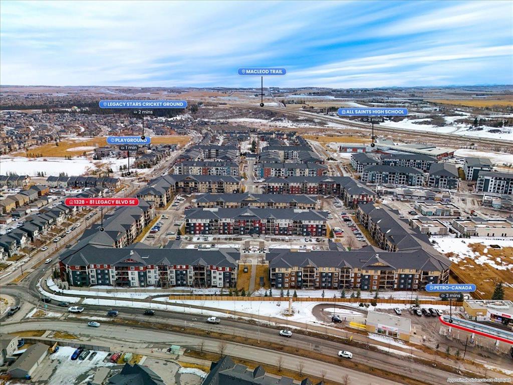 Welcome to this beautiful third-floor condo offering a perfect blend of comfort, accessibility, and modern design. This 2-bedroom, 1-bathroom home features a bright, functional layout with a warm, contemporary feel that is truly move-in ready. Enjoy added convenience with the elevator located just steps from the unit, providing quick and easy access throughout the building. The open-concept design allows the kitchen to flow seamlessly into the dining and living areas—ideal for everyday living, entertaining, or working from home. Both bedrooms are generously sized and versatile, easily accommodating a home office, guest room, or shared living arrangement. The well-appointed 4-piece bathroom is clean, modern, and thoughtfully designed for everyday comfort. Step out onto the private balcony and enjoy beautiful third-floor views, the perfect spot for morning coffee or evening relaxation. A parking stall conveniently located directly in front of the unit adds year-round ease and security. Located in the desirable community of Legacy, residents enjoy close proximity to parks, walking paths, schools, shopping, restaurants, and everyday amenities, along with quick access to major roadways for an easy commute.