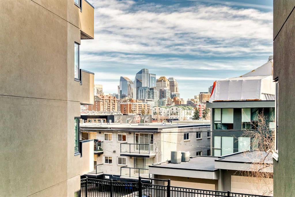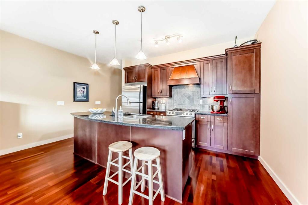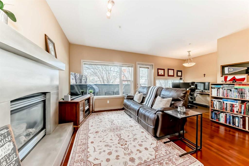 Truly a phenomenal, exceptionally walkable location for this 2 bedroom, 2 bathroom condo spread over 921 square ft with titled underground parking and a large storage locker. Enjoy the downtown lifestyle just steps to trendy 17th Ave with shops and an array of restaurants and pubs. Walk or bike downtown, along the Bow River, and the many tranquil river pathways. Plus, just a short walk to the heart of Marda Loop for additional restaurant and shopping options. Welcome home to this stylish sanctuary offering a bright and spacious layout. Chef up some culinary wonders in the large kitchen with stainless steel appliances, gas stove, and large island. Relax in your living room in front of the contemporary concrete fireplace that is bathed in sunshine from the oversized windows. The adjacent dining room (or flex space) has plenty of room for meals or the additional space you need. In-flooring heating will keep you warm and cozy all winter. At the end of the day retreat to your primary bedroom with a built-in desk nook, walk-in closet, private ensuite with soaker tub and separate shower. Laundry is also conveniently located in the primary bedroom. The second bedroom is right next to the second full bathroom. This well-maintained condo has a great combination of space and location you can’t pass up. You will also enjoy the secure, gated building. This is simply a wonderful move-in ready home in an unbeatable inner-city location!