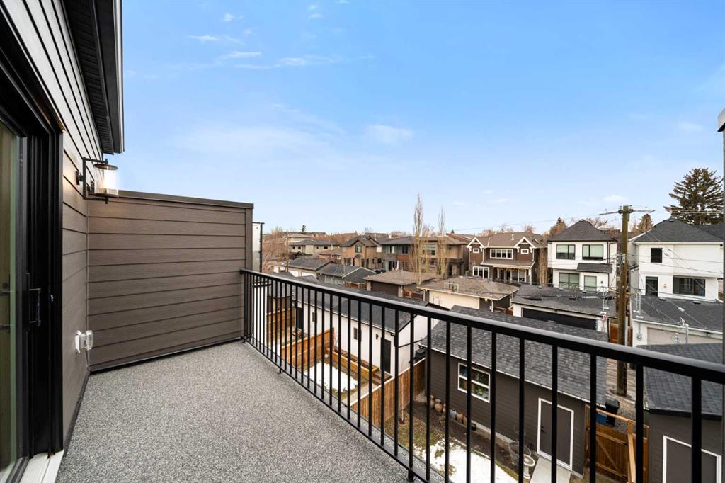 Located in the highly sought after community of Altadore with exceptional access to parks, shops, coffee spots, dining, local boutiques, and more, 2006 41 Ave SW is a striking modern duplex that perfectly balances luxury, style, and functionality. This home welcomes you with a charming front porch accented by brick pony walls, leading into a bright and open concept main floor designed for both everyday living and entertaining. The spacious dining area flows seamlessly into the gourmet kitchen, featuring an oversized island, sleek quartz countertops, premium appliances, and custom ceiling height cabinetry. The cozy living room is anchored by a gas fireplace with built in shelving, while patio doors open to a private back deck, ideal for effortless indoor and outdoor living. A functional mudroom and convenient powder room complete the main level. Upstairs, the second-floor features two spacious secondary bedrooms. The first offering a gorgeous spa inspired ensuite with a walk-in shower, deep soaker tub, dual vanities, in floor heating, and a spacious walk-in closet. The second bedroom includes its own walk in closet and private bathroom access, while a charming reading nook or office area adds flexibility to the upper floor. A dedicated laundry room completes this level. The third level is dedicated to the primary master suite, creating a private top floor retreat. This luxurious space features dual walk-in closets and a spa inspired ensuite complete with a steam shower, deep soaker tub, dual vanities, heated floors, and in closet built in custom wood wardrobes, offering exceptional comfort and versatility. A bright and open bonus area with a wet bar and access to a private balcony showcasing impressive views further enhances this level, making it perfect for both relaxing and entertaining. The fully finished basement expands the living space with a large recreation room complete with a built in media center and wet bar, an office or gym area, ample storage, a full bathroom, and an additional bedroom with a walk-in closet, ideal for guests or family. The basement also includes in floor heating rough in, offering future potential for added comfort. Additional highlights include AC rough in for future installation and a double detached garage providing secure parking and extra storage. This exceptional property delivers modern luxury, thoughtful design, and everyday practicality in one of Calgary’s most desirable inner-city neighborhoods.