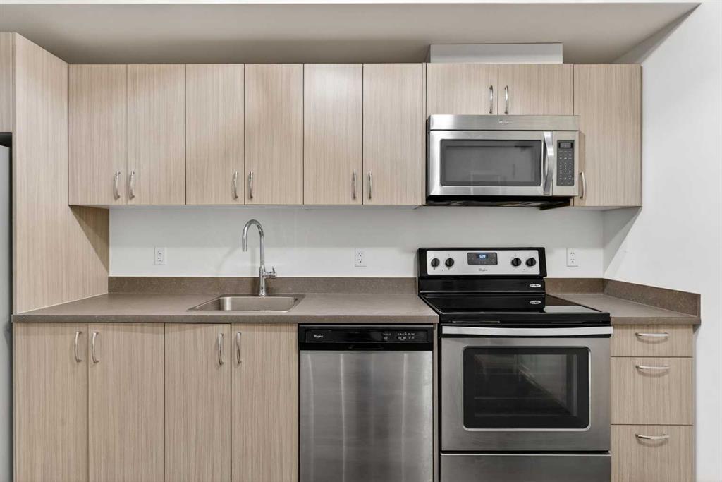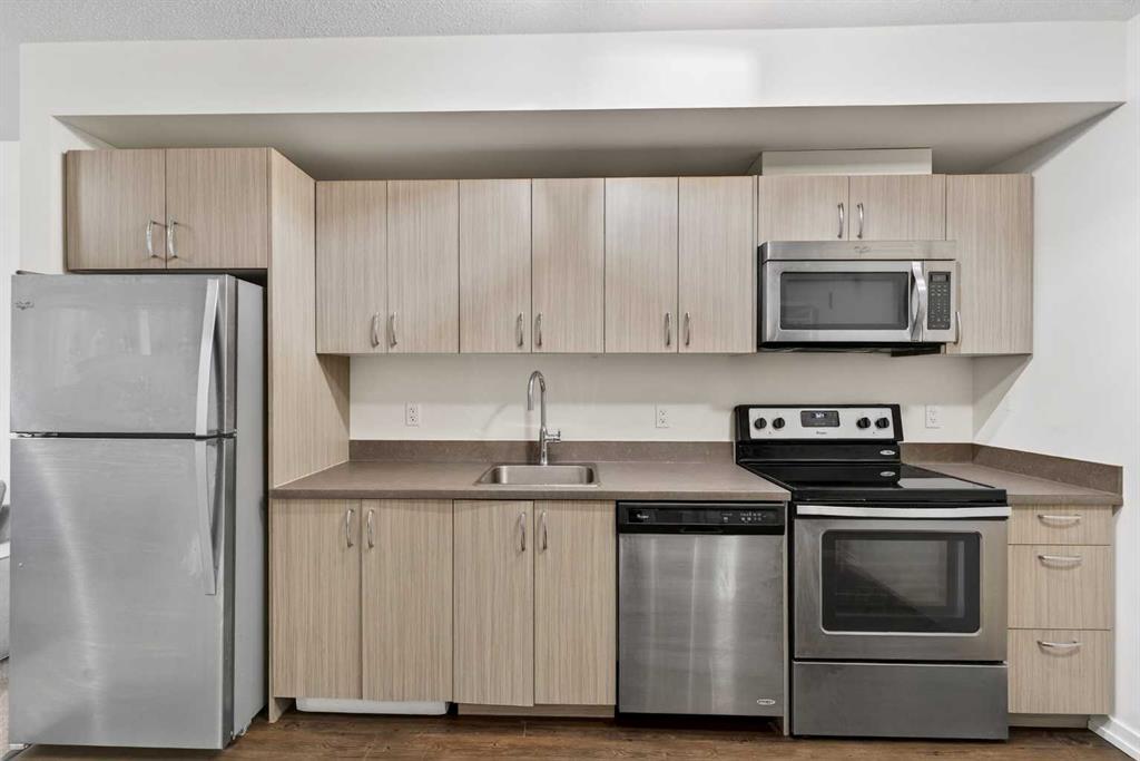 Welcome to Unit 605 at N3 (450 8 Avenue SE) — a bright and functional 2-bedroom, 1-bath condo offering approx. 429 sq ft of well-planned living space. The open-concept layout features a modern kitchen with stainless steel appliances, sleek cabinetry, and in-suite laundry, flowing into the cozy living area with large windows and access to your private balcony. Enjoy a standout urban outlook with views toward Calgary’s Central Library, plus the convenience of a secure building with elevator access, a mailroom with parcel lockers, and assigned storage! Located in the heart of East Village, you’re steps from local cafes, dining, shopping, parks, and river pathways—perfect for first-time buyers, students, or investors looking for a prime downtown lifestyle.