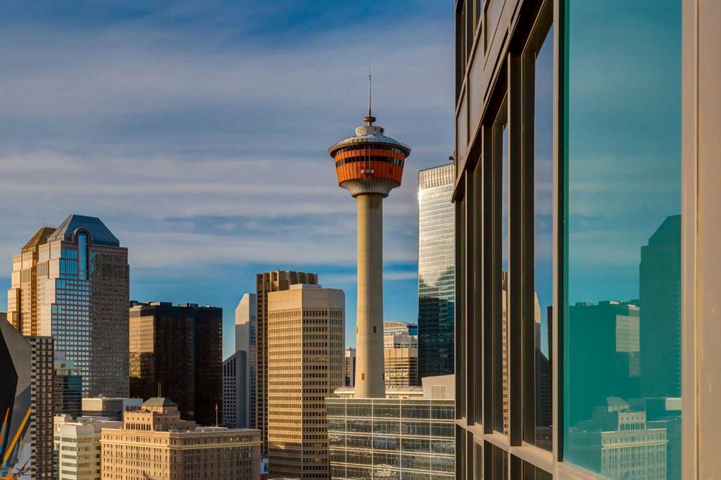 Enjoy unobstructed, panoramic views from this one bedroom, one bathroom residence perched on the 25th floor of Keynote Two. This bright, air conditioned home features 9 foot ceilings, hardwood flooring, stone countertops, stainless steel appliances, and convenient in suite laundry. Floor to ceiling windows frame spectacular views of the Saddledome, downtown skyline, and the Rocky Mountains beyond. The unit includes a storage locker, bike storage, and one of the largest and most desirable parking stalls in the entire parkade, a rare and valuable offering in the building. Residents enjoy direct +15 access to Sunterra, a well equipped fitness centre, owners lounge, and guest suites, all within a professionally managed concrete tower in the heart of the Beltline. An exceptional opportunity offering views, amenities, and parking that truly set it apart.