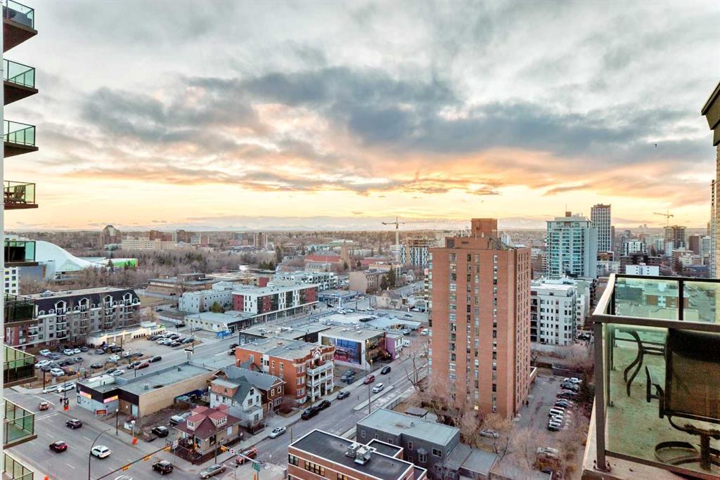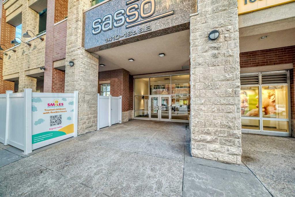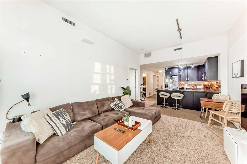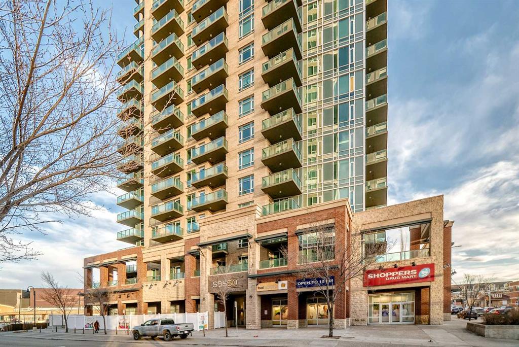 Enjoy stunning mountain and Stampede Grounds views from this well maintained 1 bedroom + den condo in the highly sought-after Sasso building. This apartment offers a rare and functional floor plan with 10-foot ceilings and an abundance of natural light throughout. The spacious primary bedroom features a walk-through closet leading to a convenient 4-piece “cheater” ensuite bathroom.The open-concept layout seamlessly connects the kitchen, living and dining areas, enhanced by floor-to-ceiling windows that showcase the incredible views. Additional highlights include in-suite laundry, central air conditioning, and a large private balcony —perfect for relaxing. This unit comes complete with one titled underground parking stall. Residents of Sasso enjoy exceptional amenities, including a fully equipped fitness centre, hot tub, multiple outdoor patios and decks, a large owners’ lounge with TVs, pool tables and card tables, plus an impressive theatre room. The location truly can’t be beat—just steps to the Saddledome and Stampede Park, a short walk to downtown, minutes from 17th Avenue’s shopping, dining and nightlife, and only one block from the LRT station. Incredible views, outstanding amenities, and an unbeatable inner-city location—this is urban living at its best.