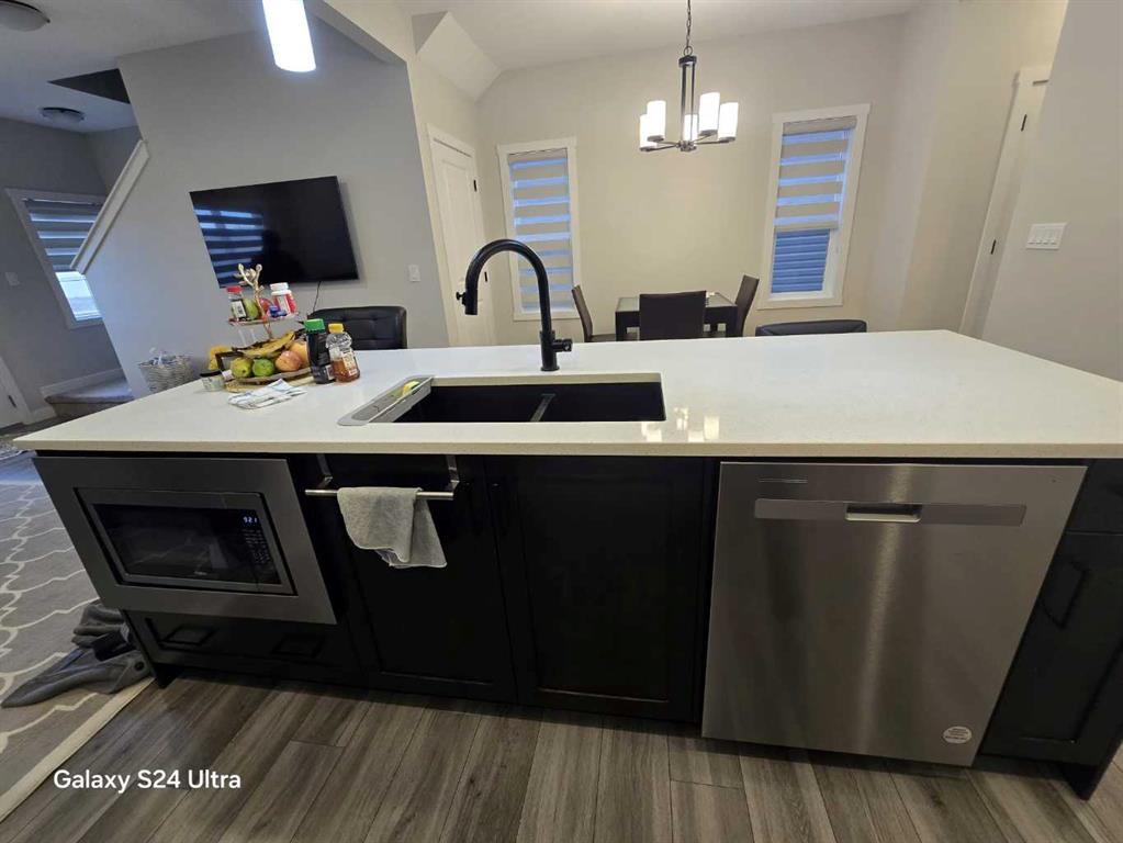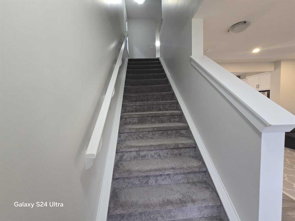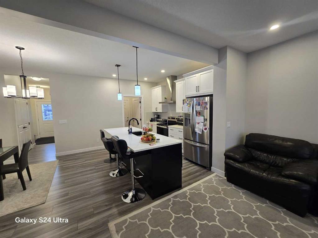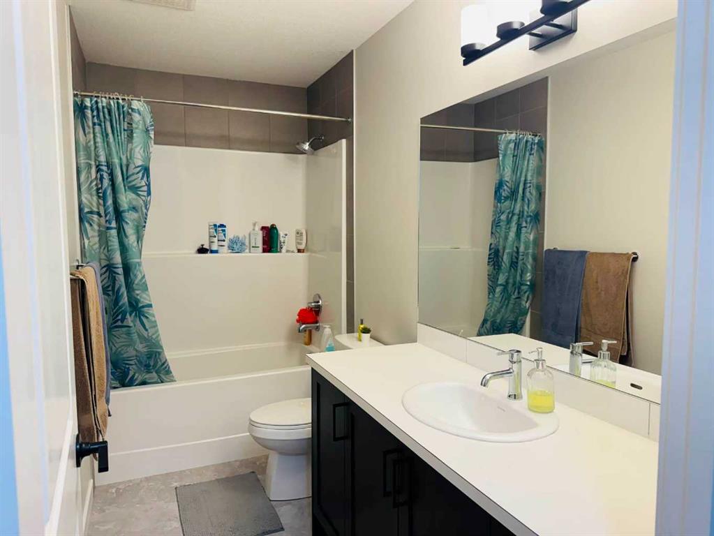 Welcome to this well-maintained, newer home located in the desirable community of Bayview, Airdrie. This beautiful 3-bedroom, 2.5-bathroom duplex features a front-attached garage, a bright open-concept layout, and a huge backyard—perfect for summer activities and family enjoyment. The main floor offers a spacious living room filled with natural light, an open kitchen with quartz countertops, modern cabinetry, stainless steel appliances, and a convenient 2-piece bathroom. Upstairs, the primary bedroom includes a private ensuite with a standing shower, while two additional good-sized bedrooms share a full bathroom. A central bonus area provides flexible space for a home office, kids’ play area, or reading nook. The unfinished basement offers excellent potential for future development, allowing you to design and build your ideal space. Conveniently located close to parks, walking and biking paths, playgrounds, schools, and shopping, this home combines comfort, functionality, and a great community lifestyle.