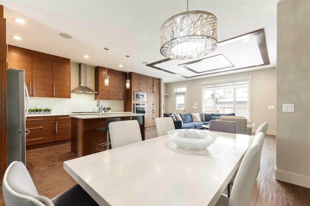 Positioned in the coveted inner-city enclave of Erlton, this semi-detached residence offers a rare blend of architectural presence and everyday livability, just moments from downtown, the Elbow River pathways, and the vibrant energy of Mission’s acclaimed dining and boutique scene. Evenings here carry a rhythm of their own. Walk to Flames games, wander home from dinner on 4th Street, or settle into your own backyard as the Stampede fireworks light up the skyline. Inside, the home unfolds with a sense of intention and design continuity. A striking, open-riser staircase anchors the main level - both sculptural and functional, setting the tone for the refined finishes that follow. The kitchen is equal parts statement and workspace, with sleek, modern cabinetry, stone countertops, generous storage, and a central island designed for gathering. It connects seamlessly to the living and dining areas, where thoughtful ceiling detailing adds architectural interest and a subtle sense of volume. Upstairs, the same sense of considered design continues, where striking vaulted ceiling details introduce a feeling of openness and visual intrigue. A built-in desk nook offers a quiet space for work or study, while a well-appointed family bath serves the secondary bedrooms. The primary suite offers a true sense of escape, complete with a spacious walk-in closet and a spa-inspired ensuite featuring a deep soaker tub, dual vanity, and an oversized steam shower wrapped in clean, contemporary finishes. A conveniently located upper-floor laundry room completes the level, adding ease to everyday living. The fully developed lower level extends the living experience with a generous recreation room, wet bar, fourth bedroom, and an additional full bathroom, ideal for guests, movie nights, home-gym, or a private home retreat. Central air conditioning ensures year-round comfort, complementing the home’s thoughtful livability. This is a home that lives as beautifully as it presents. Where design, location, and lifestyle converge in one of Calgary’s most walkable and connected communities.