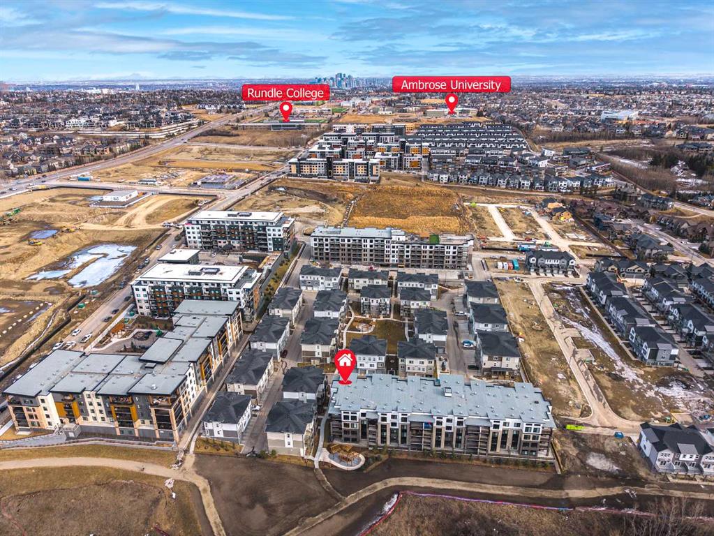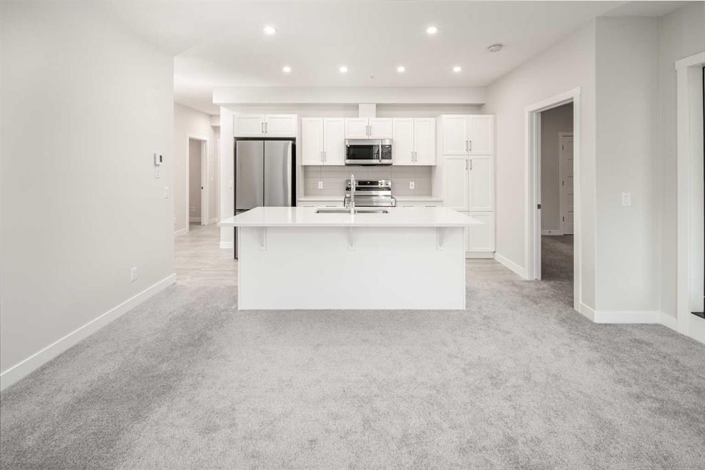 Welcome to Unit 2217 at The Whitney in prestigious Springbank Hill—a brand-new, air-conditioned 2-bedroom, 2-bath CORNER UNIT offering elevated design and exceptional privacy. Ideally positioned as a SECOND-FLOOR CORNER UNIT, this bright home enjoys a unique advantage: the level below is dedicated to BICYCLE STORAGE (NOT A RESIDENTIAL SUITE), providing added quiet and peace of mind. With 877.8 SQ. FT. RMS, the thoughtfully designed layout features expansive windows, quality finishes, and premium sound attenuation throughout. The contemporary kitchen is both stylish and functional, showcasing quartz countertops, a central island with eating bar, soft-close cabinetry, and a sleek stainless steel appliance package—perfect for everyday living and entertaining. The open-concept living and dining areas flow seamlessly onto an oversized private balcony, ideal for outdoor dining or relaxing evenings. Additional highlights include IN-SUITE LAUNDRY, BUILT-IN A/C, and TITLED HEATED UNDERGROUND PARKING(#45). Located just steps from Aspen Landing, scenic pathways, and transit including 69 Street CTrain Station, with quick access to downtown and convenient routes west toward the mountains. A rare opportunity to own a MOVE-IN READY CORNER UNIT with OVERSIZED BALCONY in this location don’t come up often—book your private showing today.
