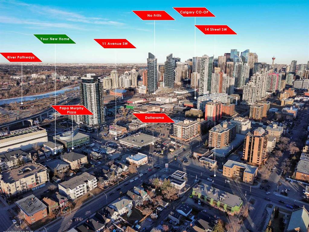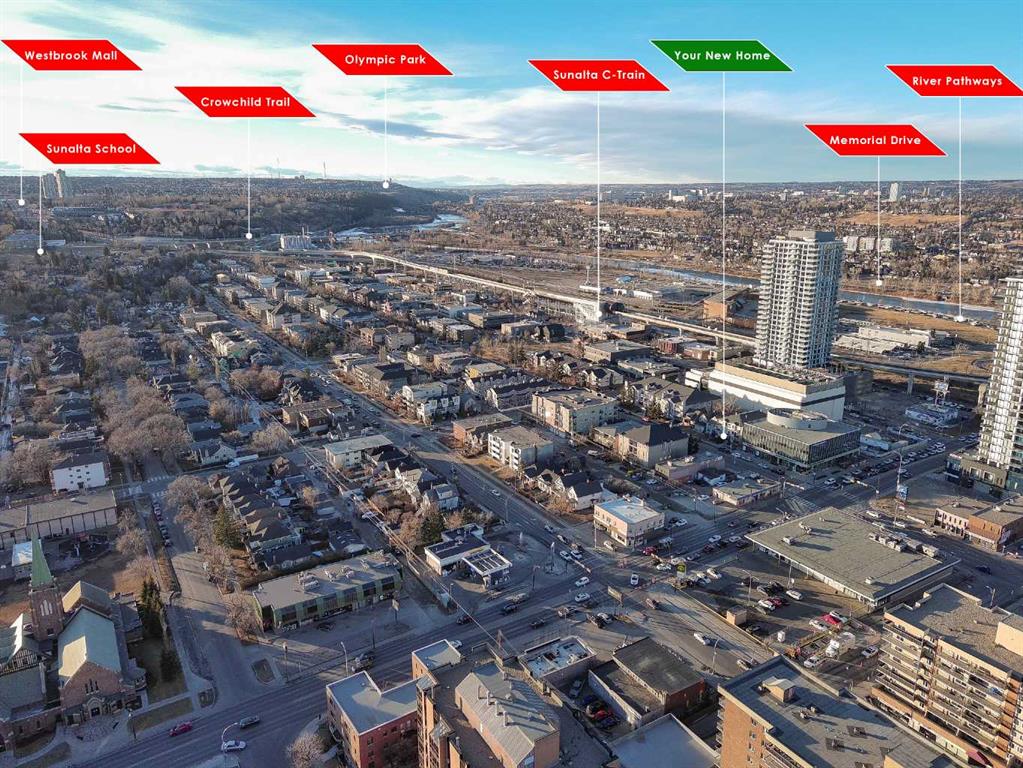 BOUTIQUE 9 UNIT BUILDING, EXTENSIVELY UPGRADED!!! $289,000 BEST VALUE in Sunalta! Fully renovated, sun filled 2 bedroom, 2 bathroom CORNER unit with a SOUTH FACING living room. Nearly 970 sqft of stylish space featuring HARDWOOD floors, bay windows, and a cozy corner gas FIREPLACE. The list of UPGRADES include full paint throughout including cabinets and trim (2025), NEW kitchen QUARTZ counters, sink and faucet (2025), quartz bathroom counters (2025), updated lighting (2025), NEW BLINDS (2024), bedroom carpets (2020), and BRAND NEW Samsung washer (2023). KING SIZED primary retreat with spa inspired ENSUITE. Private balcony, UNDERGROUND PARKING and storage locker. Steps to C Train and 17 Ave.