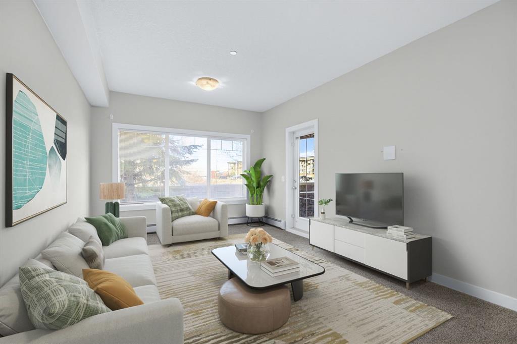 Welcome to this beautifully maintained main-floor condo in the desirable community of Kings Heights in Airdrie. Offering 616 sq ft of thoughtfully designed living space, this 1 bedroom, 1 bathroom home is perfect for first-time buyers, downsizers, or investors seeking comfort, convenience, and low-maintenance living. The open-concept layout creates a bright and functional living space, seamlessly connecting the kitchen, dining, and living areas. The kitchen features warm wood cabinetry, ample counter space, black appliances, and a functional peninsula with sink, making meal prep and entertaining easy and efficient. The living room is spacious and filled with natural light from the large window and patio door. The bedroom is well-sized and offers generous closet space, while the 4-piece bathroom is clean and well-appointed with matching cabinetry and plenty of counter space. Enjoy the convenience of in-suite laundry with a stacked washer and dryer. Located on the main level, this unit offers easy access and a private balcony — perfect for morning coffee or relaxing in the evening. The home also includes a parking stall and a separate storage locker for added convenience. Kings Heights is one of Airdrie’s most sought-after communities, known for its scenic pathways, ponds, and family-friendly atmosphere. Residents enjoy close proximity to schools, parks, shopping, restaurants, and everyday amenities at Kingsview Market. With quick access to Highway 2, commuting to Calgary is simple and convenient. Whether you’re looking for an affordable entry into the market or a fantastic investment opportunity, this well-located condo offers incredible value in a vibrant and growing community.