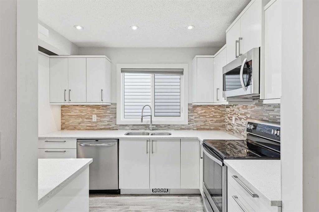 20K+ PRICE DROP! Offering 1,415 sq ft of thoughtfully designed living space, this open and airy two-story townhome is ready for its new owners with an unbeatable inner-city location. The main floor features a bright great room layout with pot lighting, durable laminate flooring, and seamless flow throughout. The timeless white kitchen showcases glossy flat-panel cabinetry, quartz countertops, stainless steel appliances, and a glass tile backsplash — perfect for both everyday living and entertaining. You’ll also find convenient main floor laundry, a 2-piece powder room, and access to a large private front wood deck surrounded by mature trees for added privacy. Upstairs offers three generously sized bedrooms, including a spacious primary retreat. A full bathroom completes this floor. The full undeveloped basement provides excellent storage space and future potential. Assigned parking stall included. Located just steps from the shops, dining, and amenities that make Marda Loop one of Calgary’s most vibrant communities — this is inner-city living at its best.