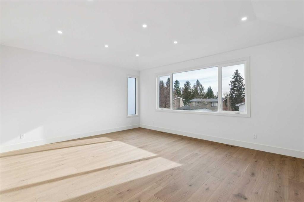 Soko Modern Homes presents this stunning custom-built luxury two storey walk-up home in popular Braeside. Exceptional craftsmanship, thoughtful design, and impressive attention to detail throughout! Featuring a total of 6 bedrooms, 4 of which are above grade including a convenient main floor bedroom with a full bathroom – perfect for those with mobility challenges, or to use as an office. Wide plank European oak engineered hardwood, smooth ceilings, 8’ doors, white oak railings and posts, and extensive custom LED lighting setting the tone. The open-concept main level is anchored by a chef-inspired kitchen featuring a massive white oak quartz island with a wine fridge, side-by-side refrigerator/freezer, gas cooktop, wall oven, microwave, abundant pot drawers, and a spacious walk-in pantry with custom built-ins. The adjoining dining area offers an ideal space for entertaining, while the sunny south-facing family room is a great spot to relax and unwind in front of the Napoleon linear gas fireplace. Upstairs, the vaulted primary retreat boasts large south-facing windows and a spa-inspired ensuite with a dual-sink floating vanity with LED lighting, luxurious towel warmer, freestanding tub, oversized custom shower, and private water closet, along with a stunning custom walk-in closet with LED lit island. Two additional oversized bedrooms each include their own 3-piece ensuites and walk-in closets, complemented by a convenient upper laundry room with quartz counter and sink. The fully developed walk-up basement is filled with natural light from oversized 3’x6’ windows and features LVP flooring, in-floor heating on two zones, two additional bedrooms, a 4-piece bath, custom bar with designer lighting, and excellent storage space. Extensive upgrades during construction and additional highlights include Lux triple-pane windows, zoned heating, central A/C, on-demand hot water, 200 amp service, and built-ins in every closet. The fully finished, heated and oversized 32’ wide triple garage offers 8’ high doors, two EV plugs, hot tub rough-in, and ample storage. Exterior details include extensive custom concrete work, a large front porch with heavy-duty wood grain metal soffit, front irrigation, low-maintenance rear yard, open under-deck storage, and camera rough-ins throughout. Choice location, walking distance to both public & separate elementary, public junior high, steps to Southland Leisure Centre and Braeside Community Centre. Minutes to shopping & restaurants at Glenmore Landing, JCC, Co-op, Costco, pathways at Glenmore Reservoir and Stoney Trail access. 10 year Alberta New Home Warranty. Braeside’s original show home street has it’s first new show home in 55 years! A truly exceptional home that must be seen to be appreciated!